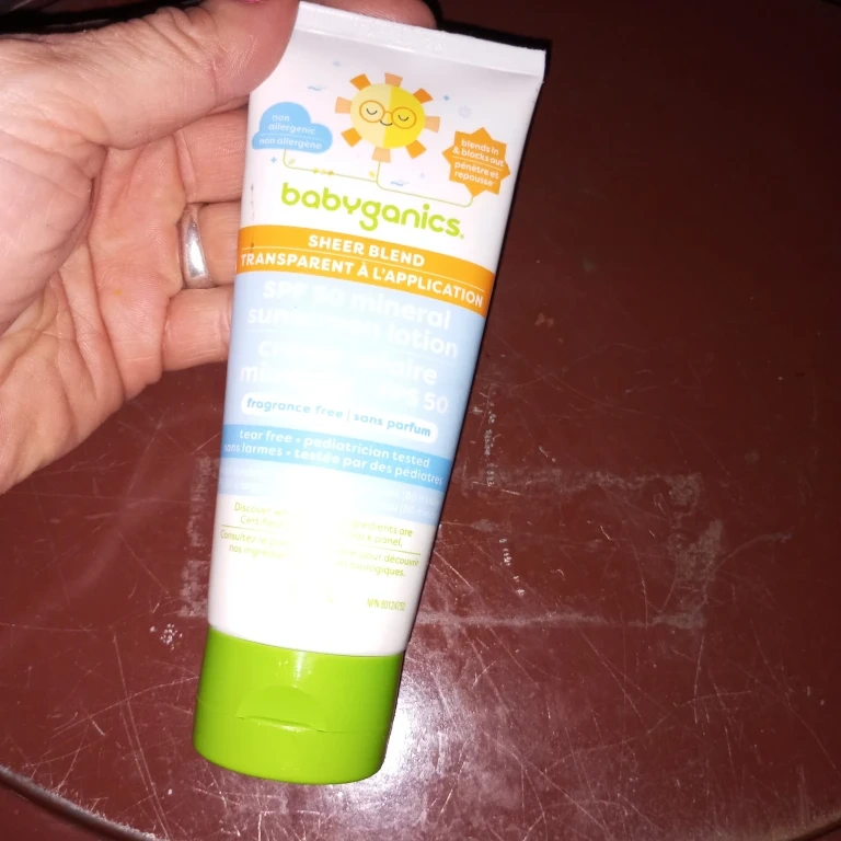 Babyganics Sheer Blend Mineral Sunscreen Lotion with SPF 50.