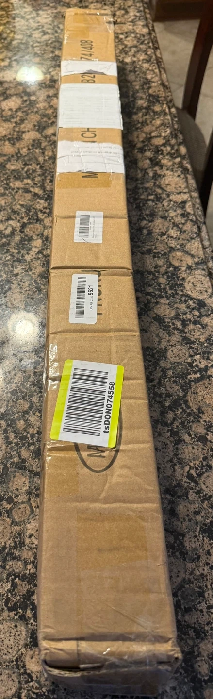 Selling a set of Mayrhyme brushed nickel bay window curtain rods! They come with aluminum end cap finials and brackets. The centre rod is adjustable from 36-72 inches, and the side rods are 20-36 inches. The box is included! New in box