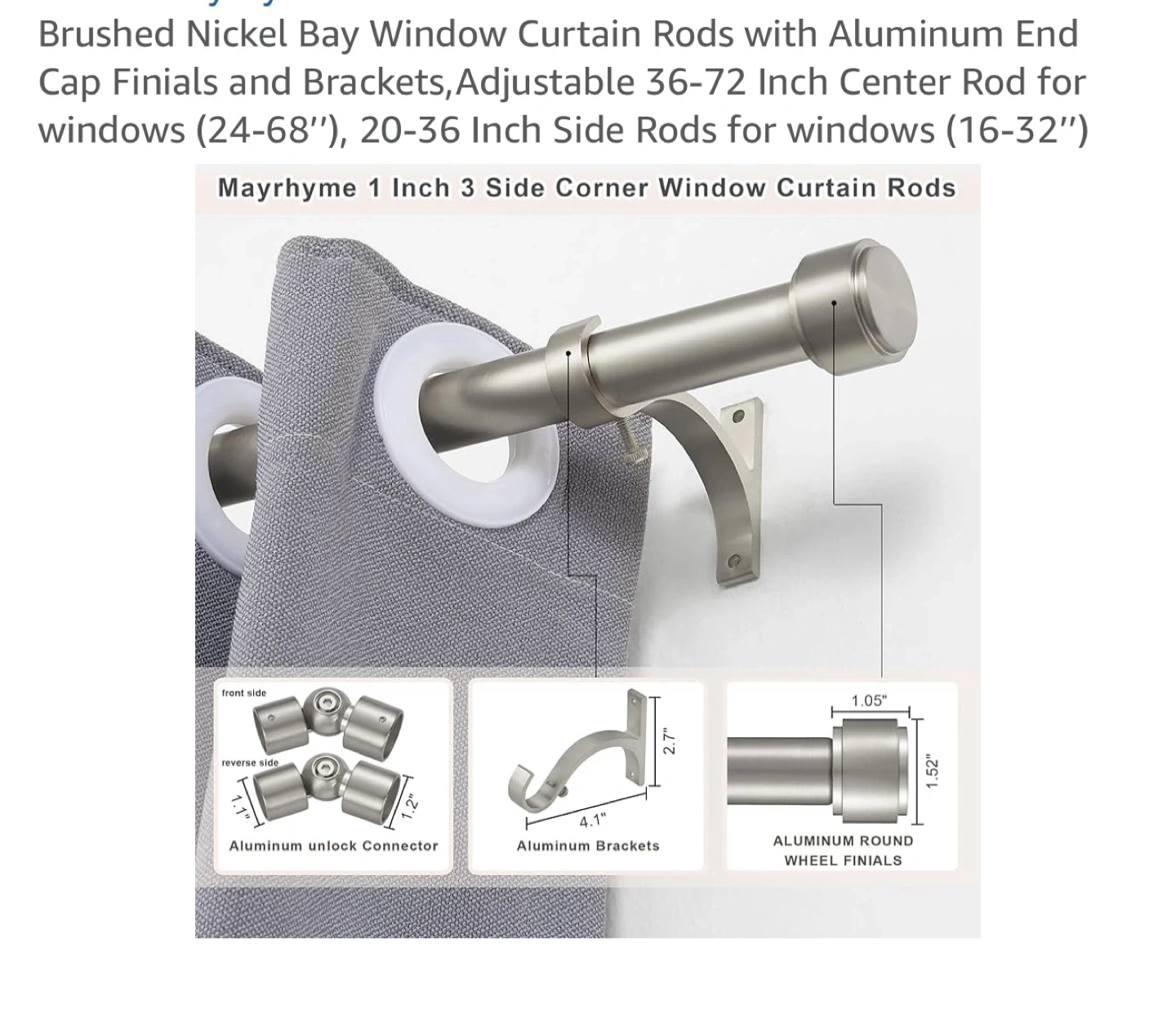Mayrhyme Brushed Nickel Bay Window Curtain Rods