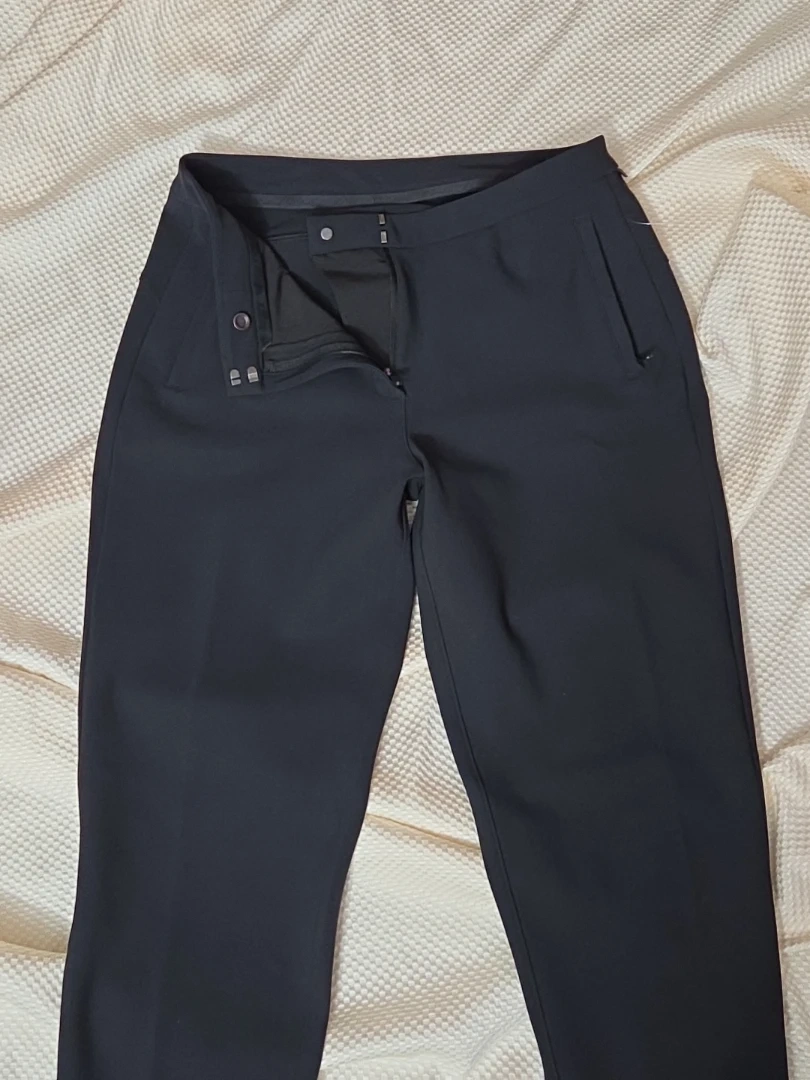 Selling a pair of Lululemon black pants in size 8. They are in great condition and ready for a new owner! The pants feature a YKK zipper, side pockets, reflective material at bottom of each pantleg-see photo.