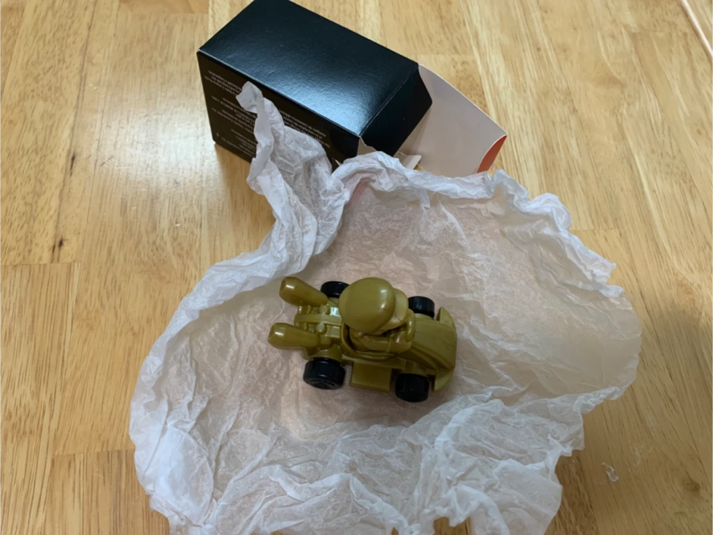 a McDonald's Mario Kart racer toy. It's the golden Mario in his kart! Comes with the original box