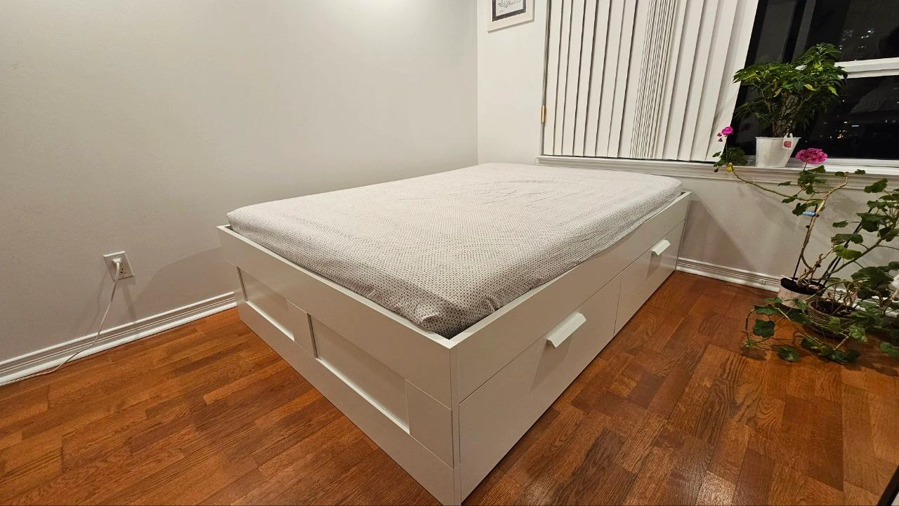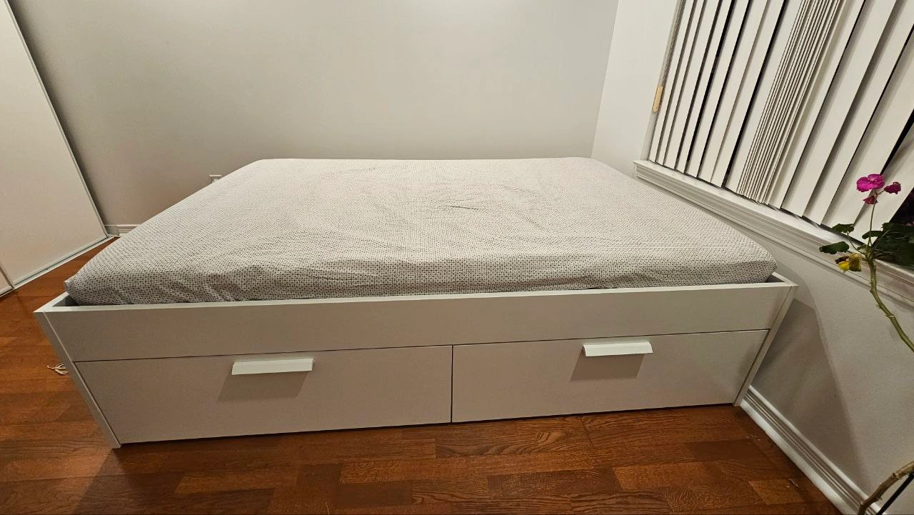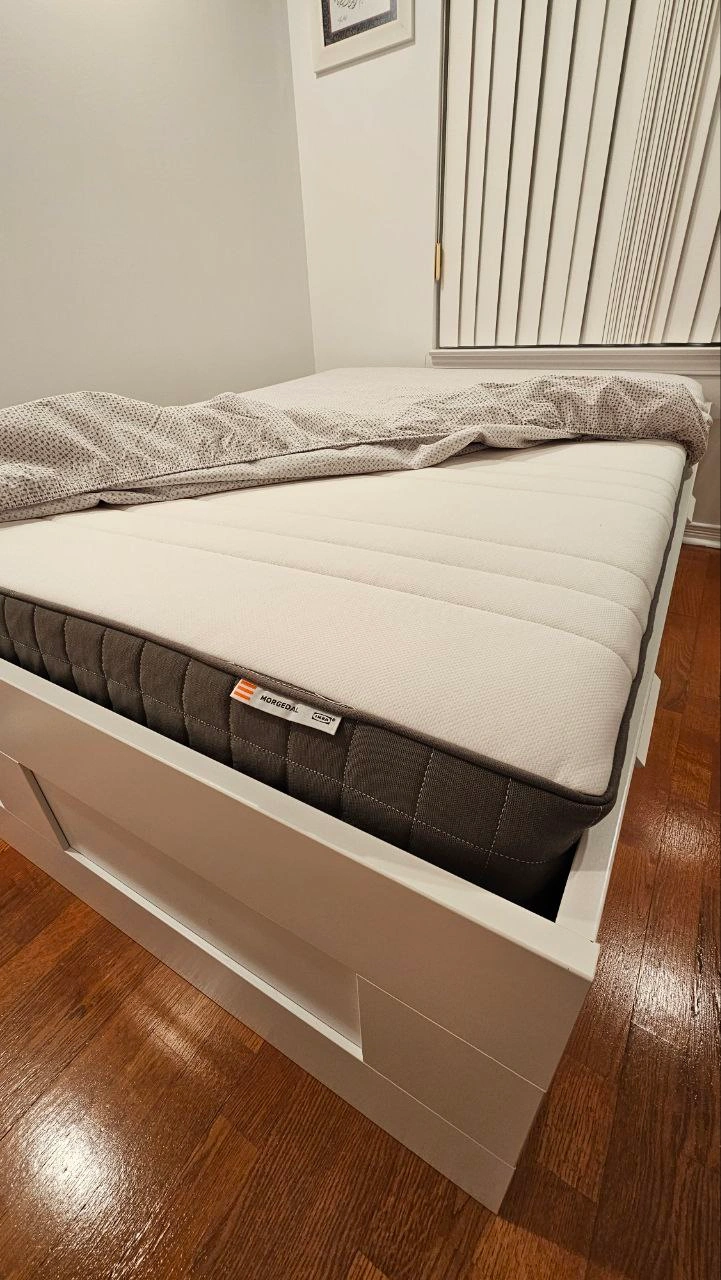 Double Brimnes Bed Frame with 4 Drawers and Morgedal mattress