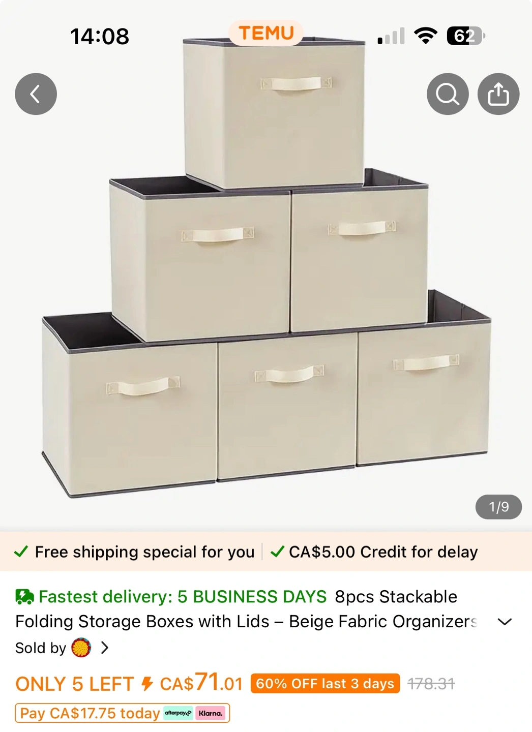 6 Pack Stackable Folding Storage Boxes with Lids - Beige