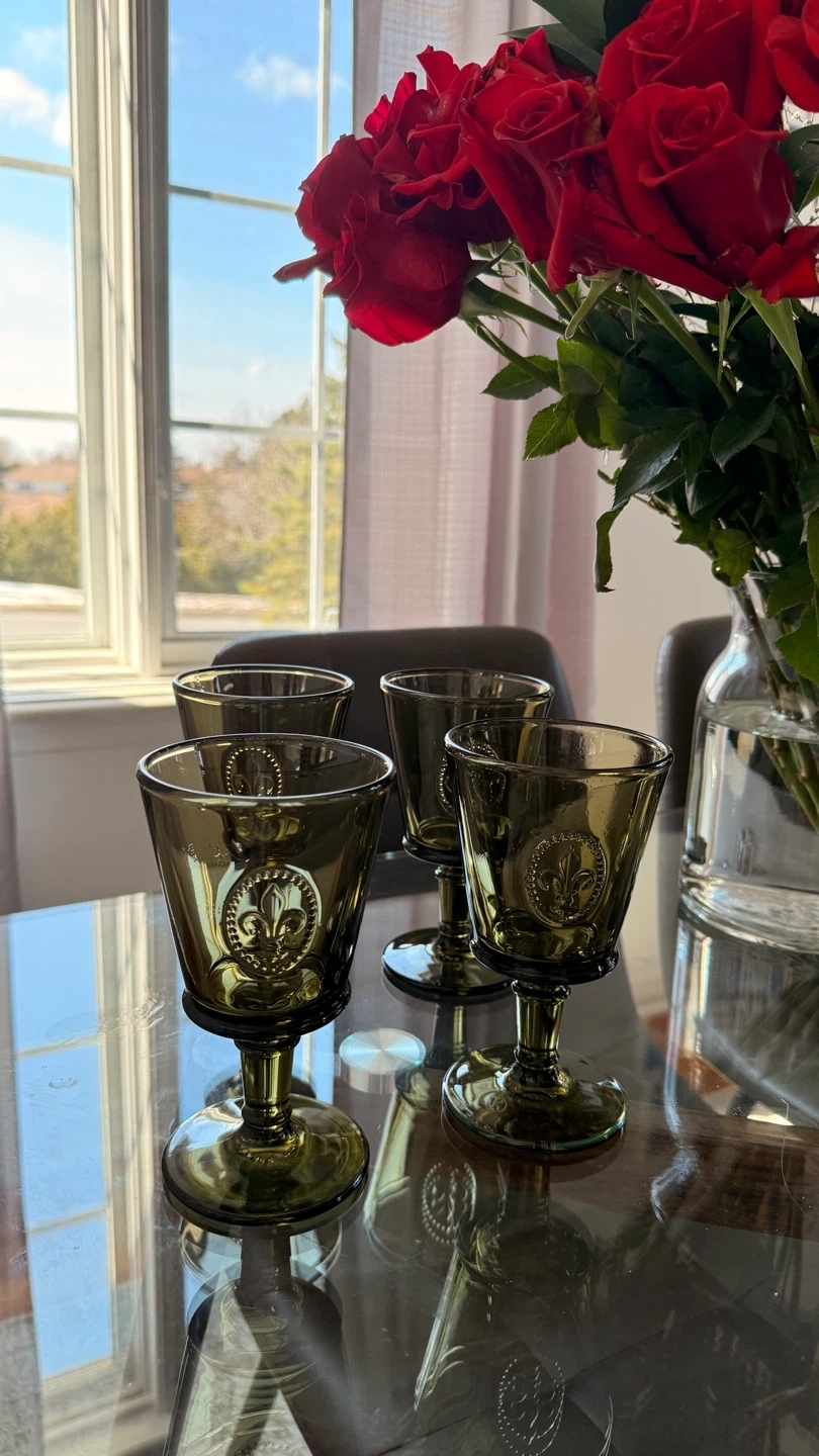 Set of 4 Dark Green Fleur-de-lis Goblets/ wine glasss