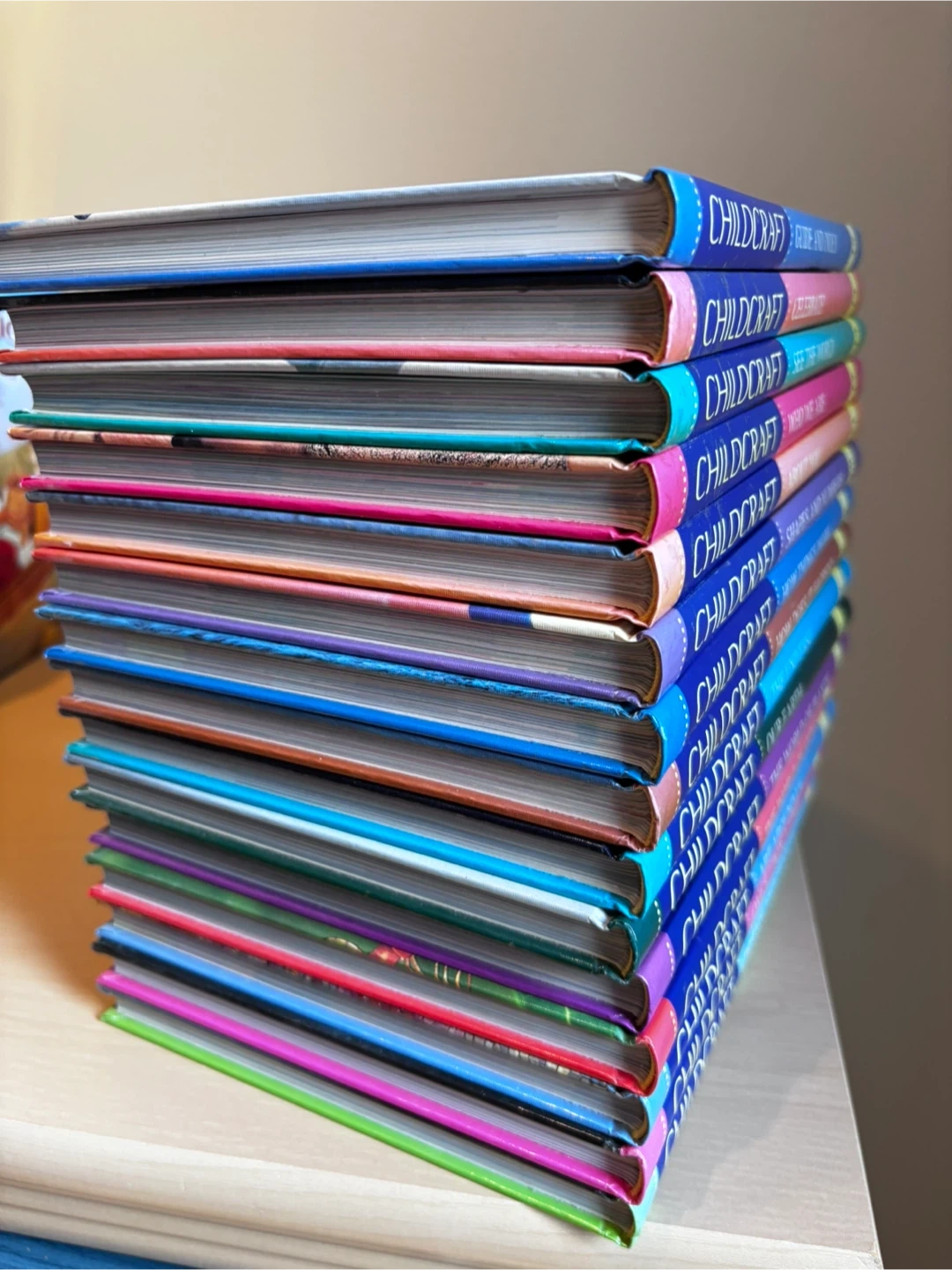 A collection of 15 World Book's Childcraft encyclopedias. Topics cover a wide range, including 'Once Upon a Time', 'The World of Animals', 'Our Earth', and 'The Universe'. This set's colourful spines add a nice touch to any bookshelf. Perfect for young learners!