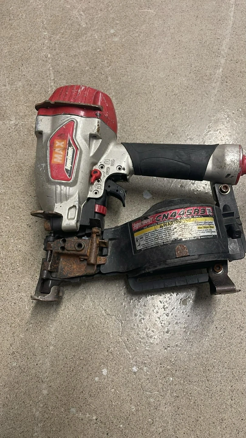 This is a MAX CN445R3 SuperRoofer coil nailer. It's designed for wire-weld nails up to 1-3/4 inches. The tool operates at 70-120psi.Don't be fooled by the rust, the nailer works great.
