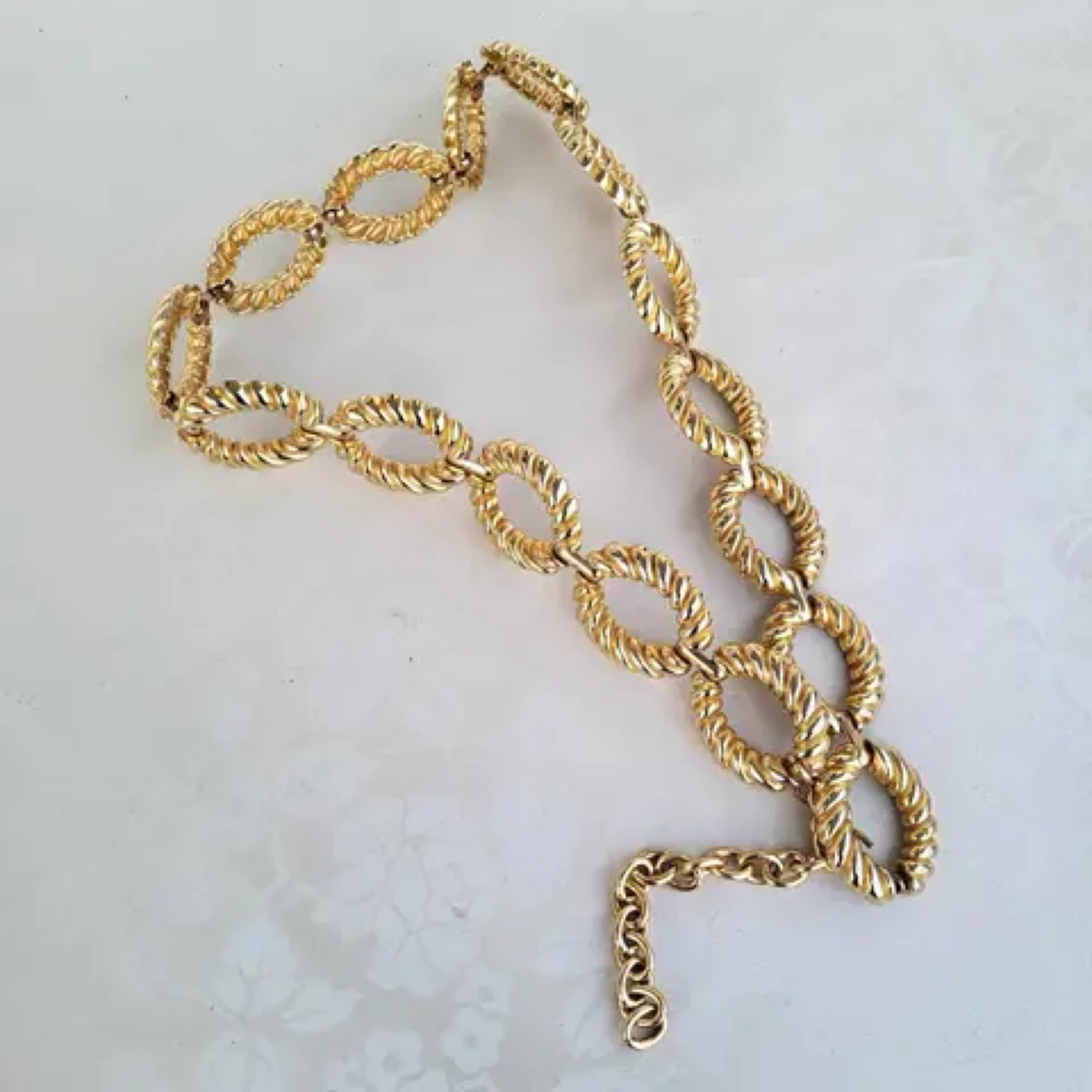The oval links have a twisted rope design for a unique look.
