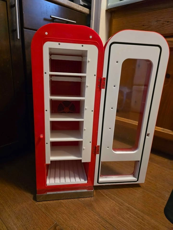 This adorable retro Coca-Cola fridge brings all the vintage vibes. It’s the perfect little statement piece for a gaming room, a man-zone, or a woman’s cozy hangout corner. It has that classic Coke-machine look that always gets attention. It doesn’t come with the power cord, which is why it’s priced at $80 — but the best part still works: Press the button and the cans still drop down just like the old machines! It’s ridiculously fun and super nostalgic. Great for collectors, home bars, gaming setups, offices, and anyone who loves vintage Coke stuff.