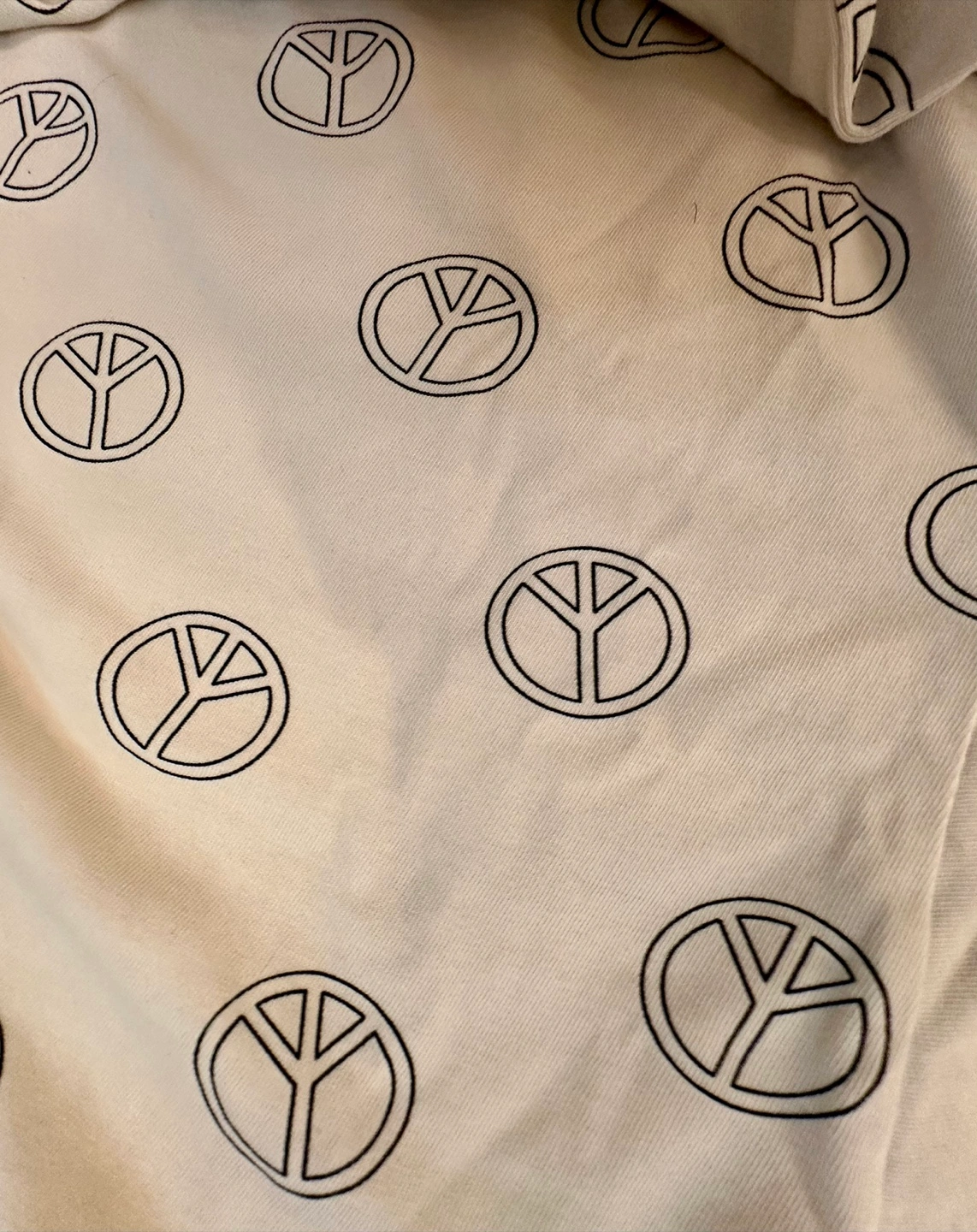 Cute t-shirt with an all-over peace sign print! It's made of 100% cotton and designed in Canada. Perfect for a casual, comfy look