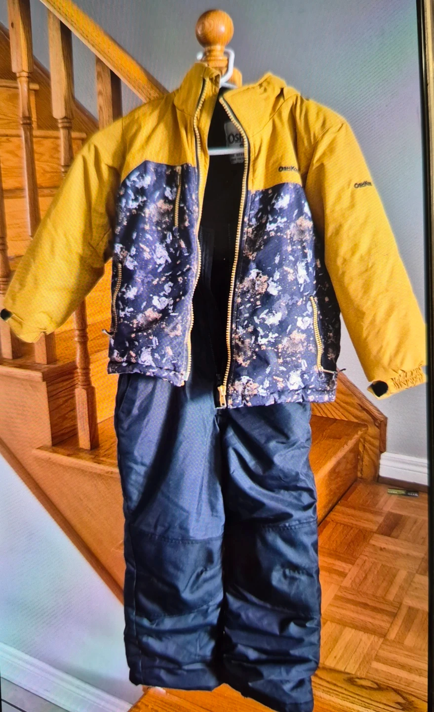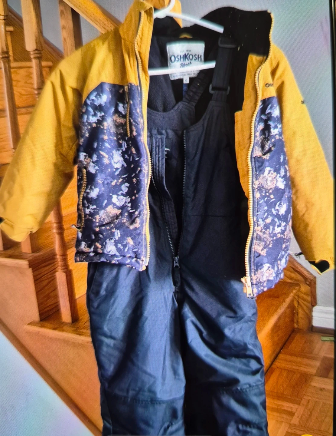 This OshKosh B'gosh ski suit includes a warm jacket and bib pants. It's designed for cold weather adventures. The set comes in size 6.