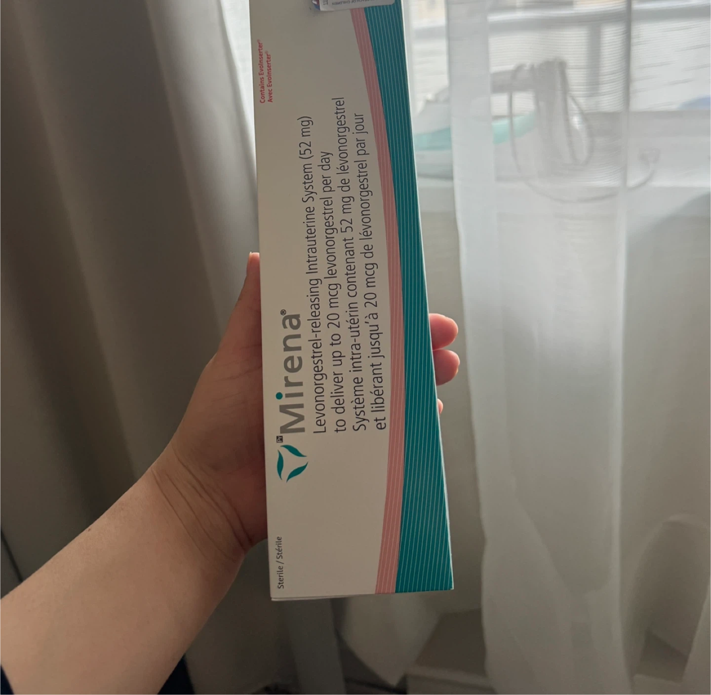 Mirena is a levonorgestrel-releasing intrauterine system. It delivers up to 20 mcg of levonorgestrel per day. It contains the Evolinserter.