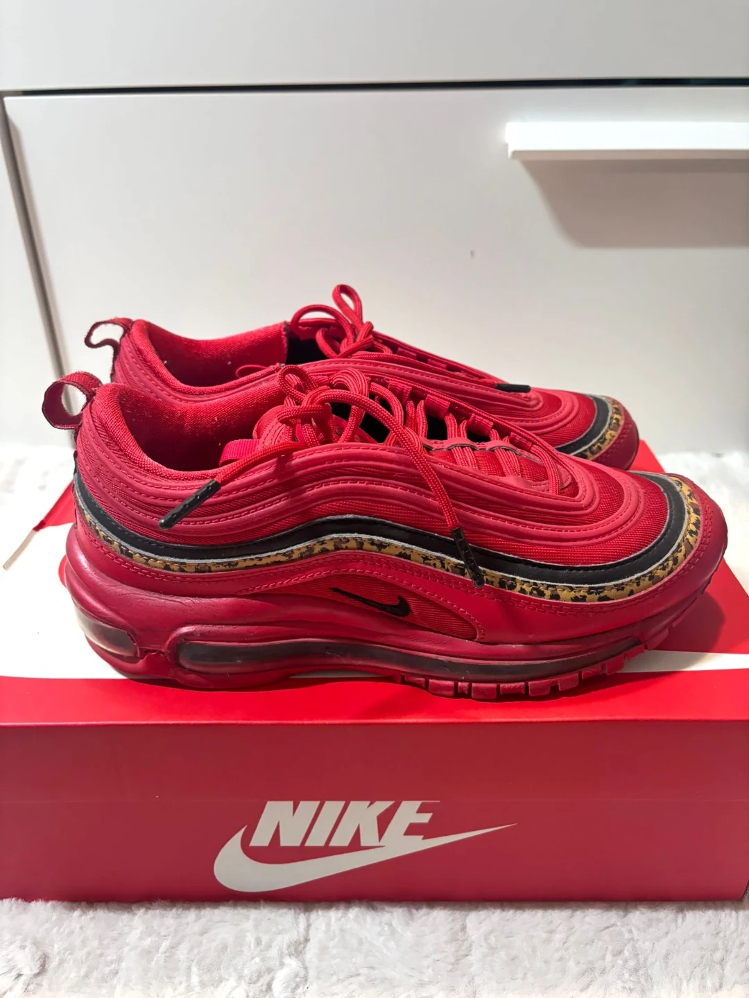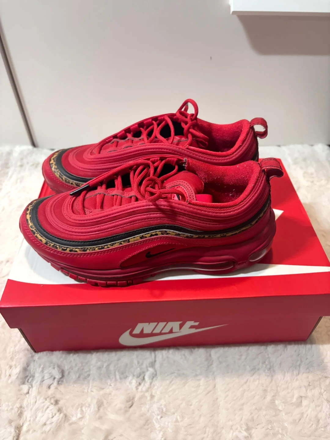 Red Nike Air Max 97 Leopard Pack Red. Size 8 wmns. Some scuffing on the buble heel but in great condition. Box include but it is NOT the original box.