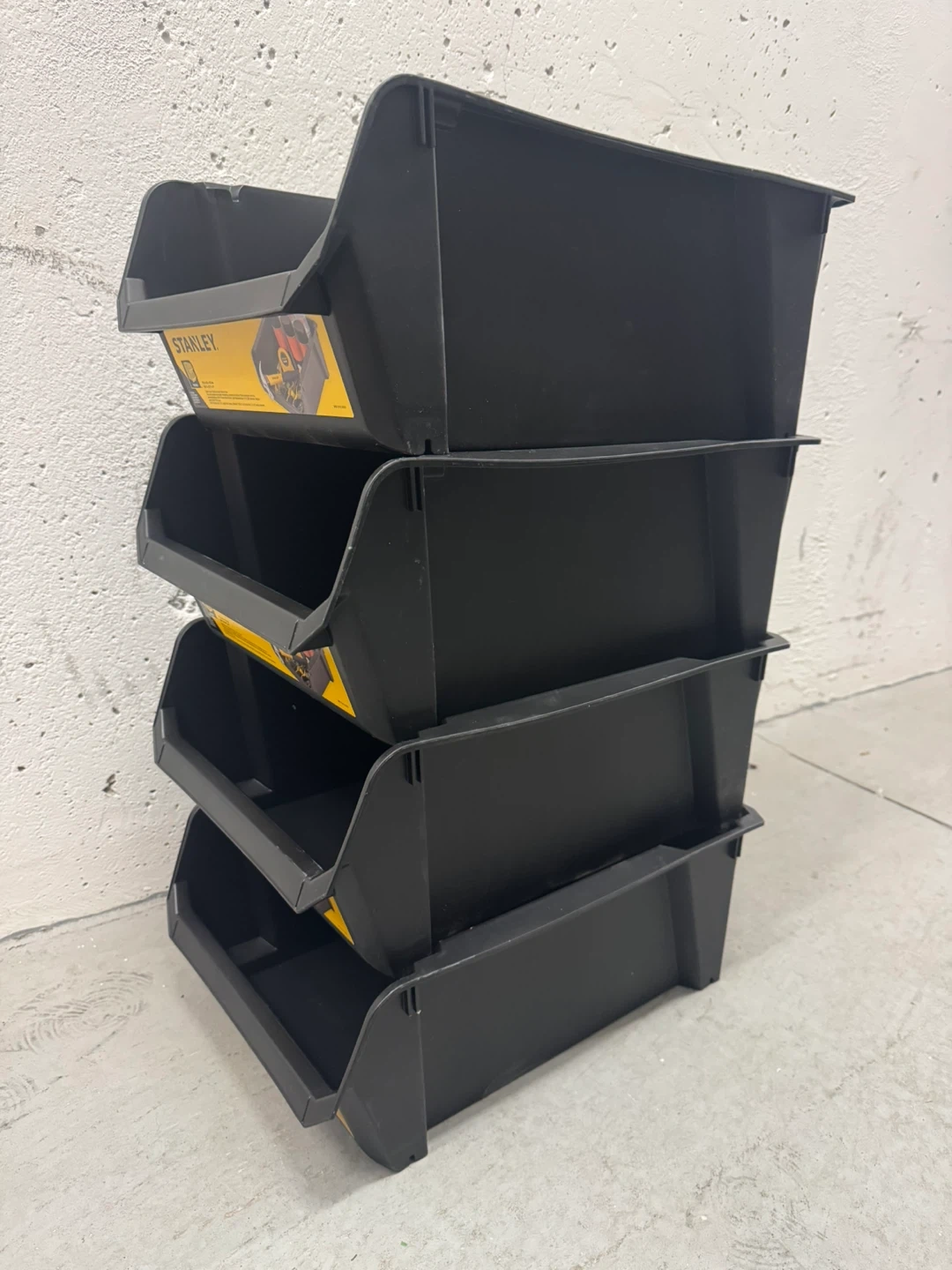 Selling a set of 4 Stanley 17.7” stackable storage bins. They are black and in New condition. Perfect for organizing your garage, workshop, or craft room. These are super handy for keeping things tidy and easy to find. All for $25.