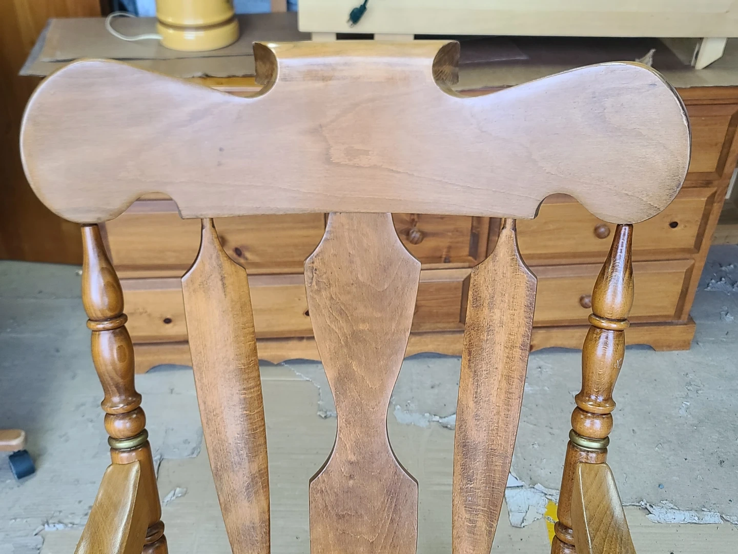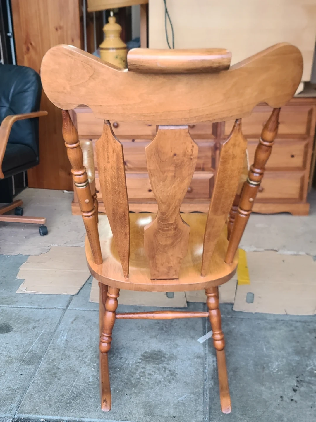 Wooden rocking chair, perfect for a living room or porch. It's made of solid wood with a warm, natural finish. The curved seat and back provide comfort while rocking. This chair is suitable for anyone looking to add a classic touch to their home. Measurements to follow. Delivery can be arranged. Viewing and pickup by appointment.
