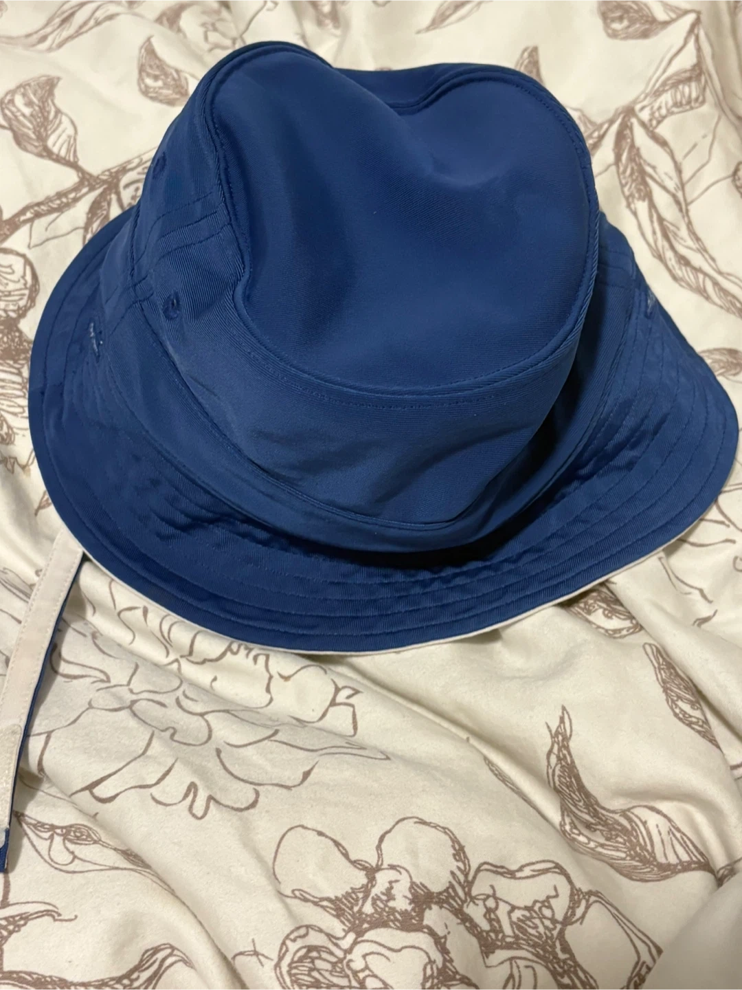 This is a Gap baby bucket hat. It's reversible and suitable for babies aged 12-18 months. Made in Vietnam.