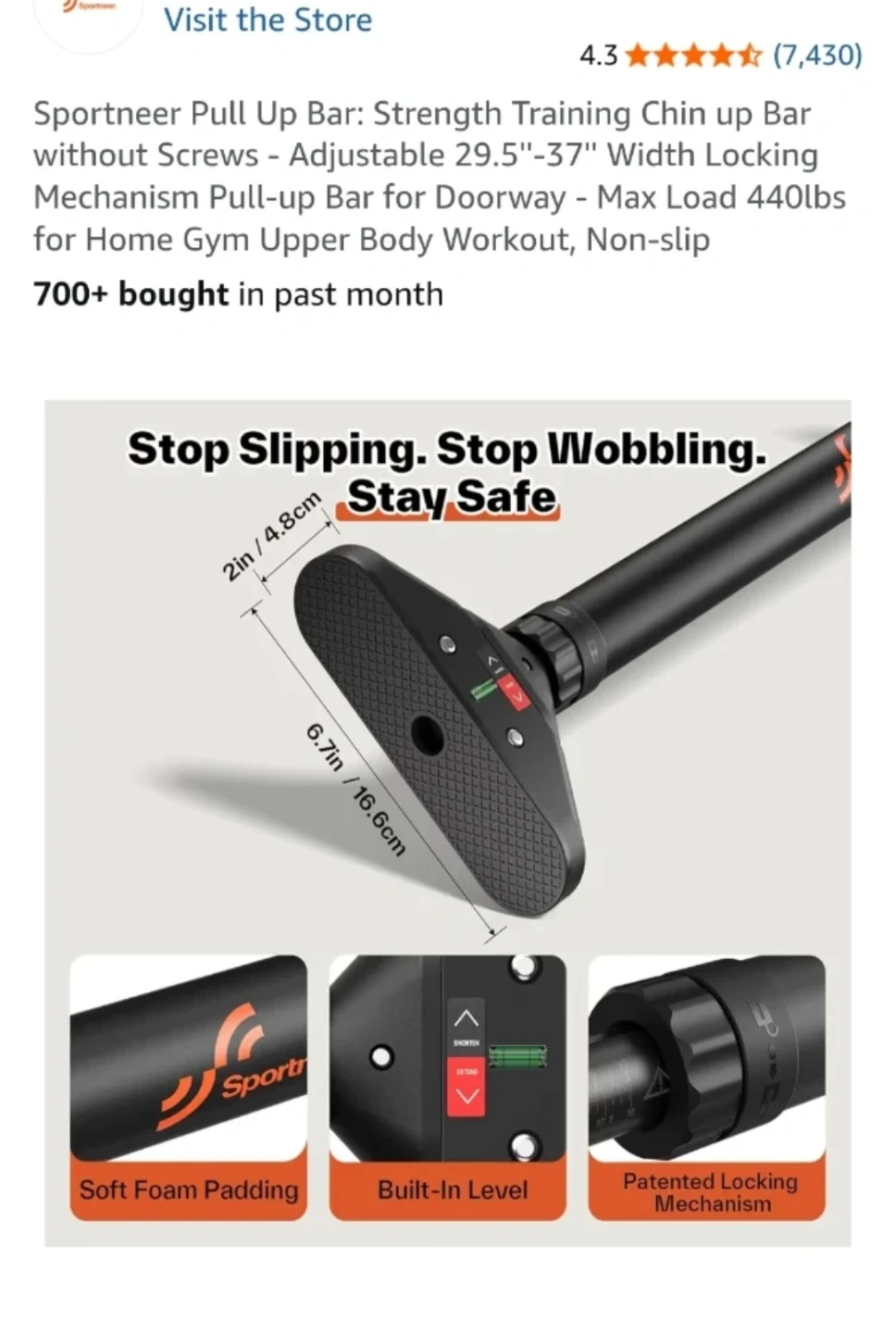 Moving sale - Sportneer Pull Up Bar - Adjustable 29.5"-37"