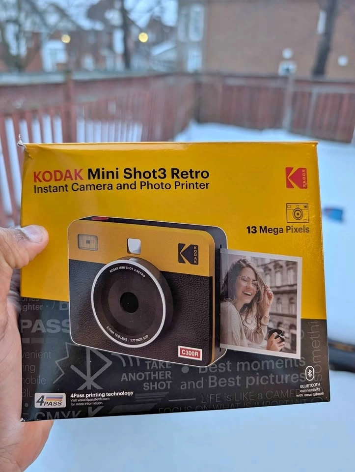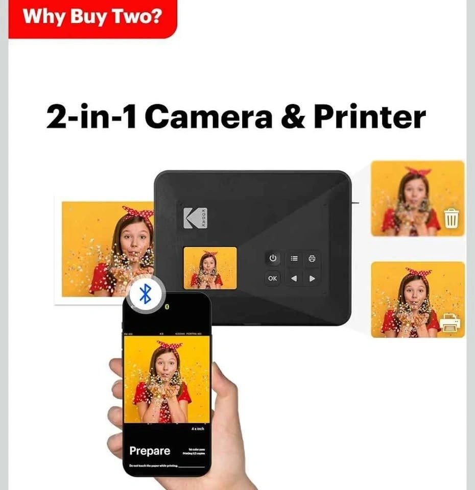 Capture memories and print them instantly with the Kodak Mini Shot 3, a stylish retro-designed instant camera that also works as a Bluetooth photo printer.