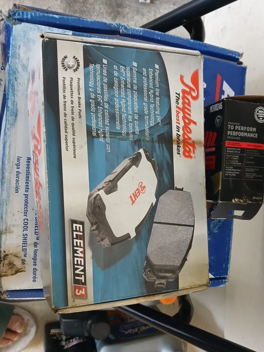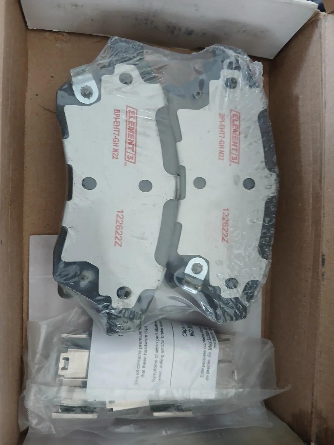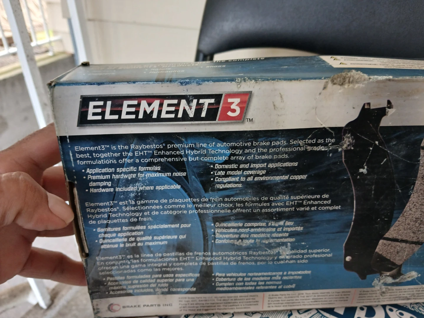 These are Raybestos Element 3 premium line of automotive brake pads. They feature Enhanced Hybrid Technology and professional grade formulations. Hardware is included where applicable for quiet operation and durability.