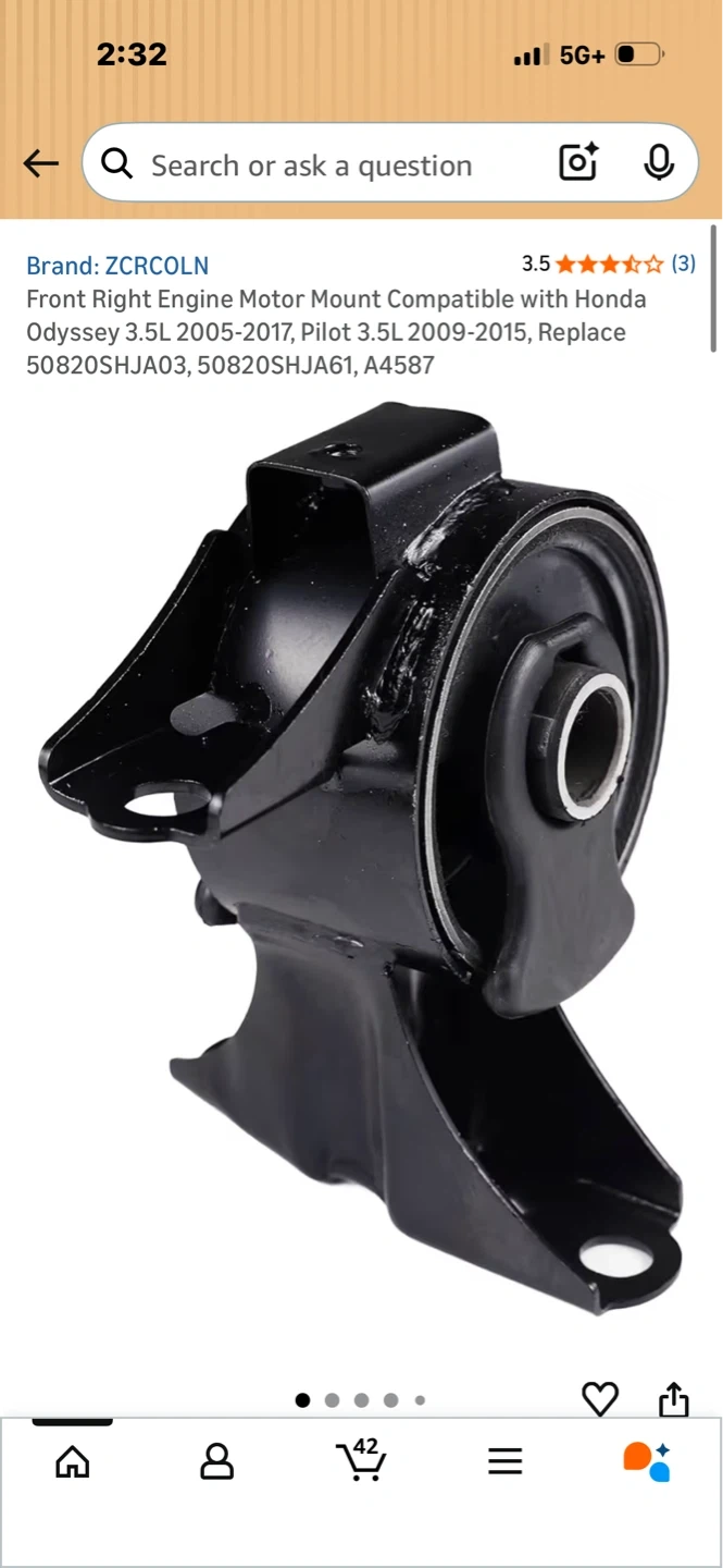 This is a front right engine motor mount. It's compatible with Honda Odyssey 2005-2017 and Pilot 2009-2015 models. This mount replaces part numbers 50820SHJA03 and 50820SHJA61.