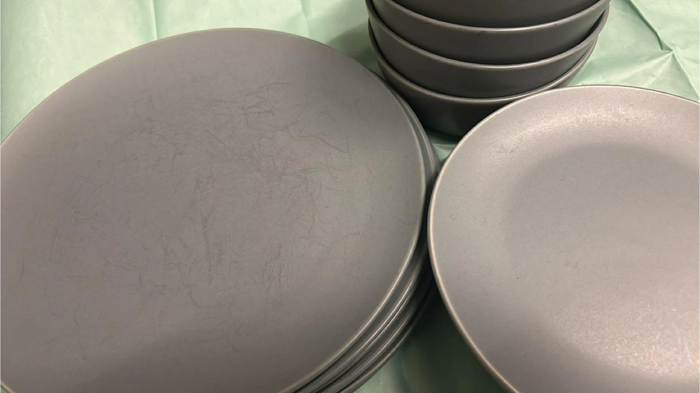 Set of Grey Dinner Plates and Bowls