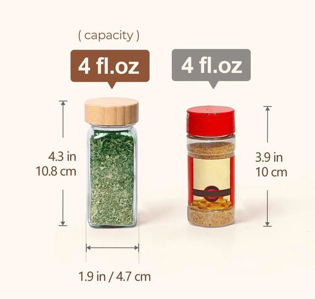 New in box - 4oz 24Pcs Glass Spice Jars with Bamboo Lids, Empty Spice Containers with 93 Labels, Square Seasoning Containers Trial and Supplement Set, Small Seasoning Bottles for Salt, Herbs, Sugar, Pepper. Pickup in Barrhaven.