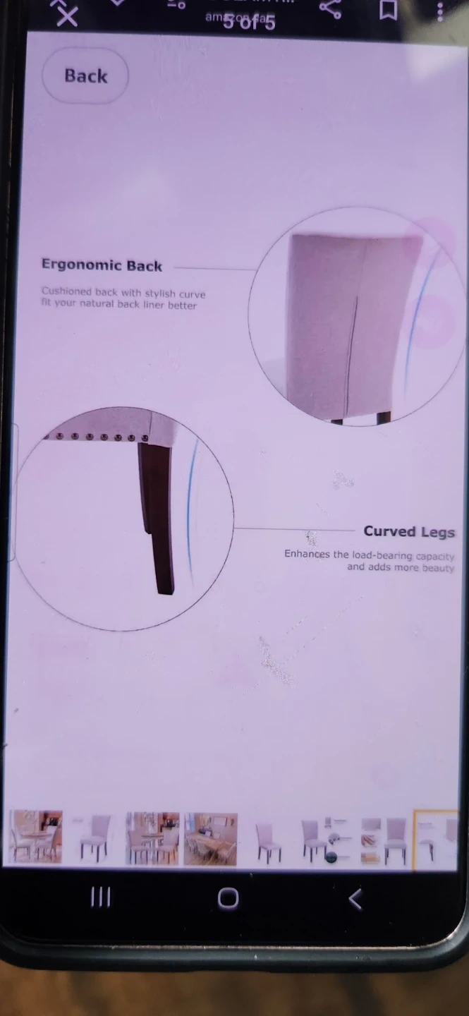 Set of two COLAMY upholstered Parsons dining chairs. Features fabric upholstery with nailhead trim and solid rubber wood legs. High-density sponge padding offers comfort.
