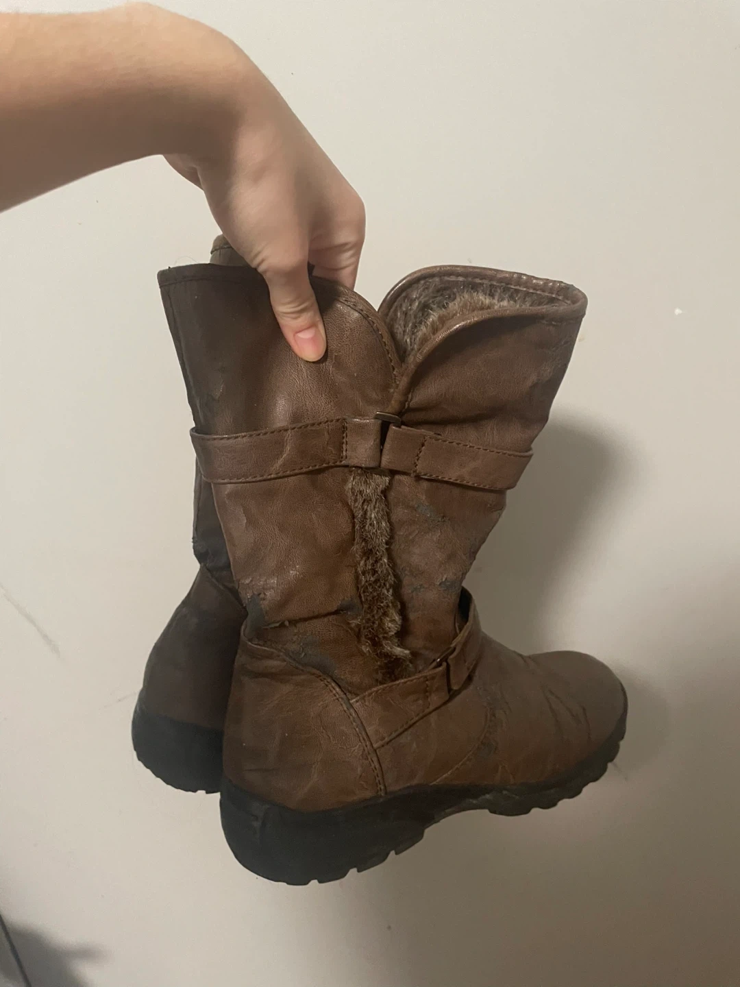 🥕Brown Faux Leather Fur Lined Winter Boots