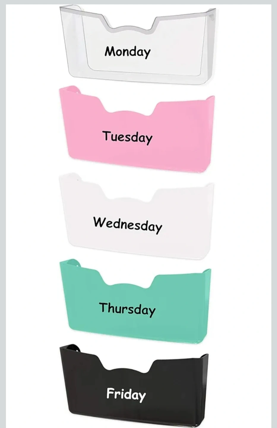 This set includes five wall file holders in assorted colours. Each holder measures 13.75" wide, 6.75" high, and 3.4" deep. They're perfect for organizing mail, magazines, or documents at home or in the office.