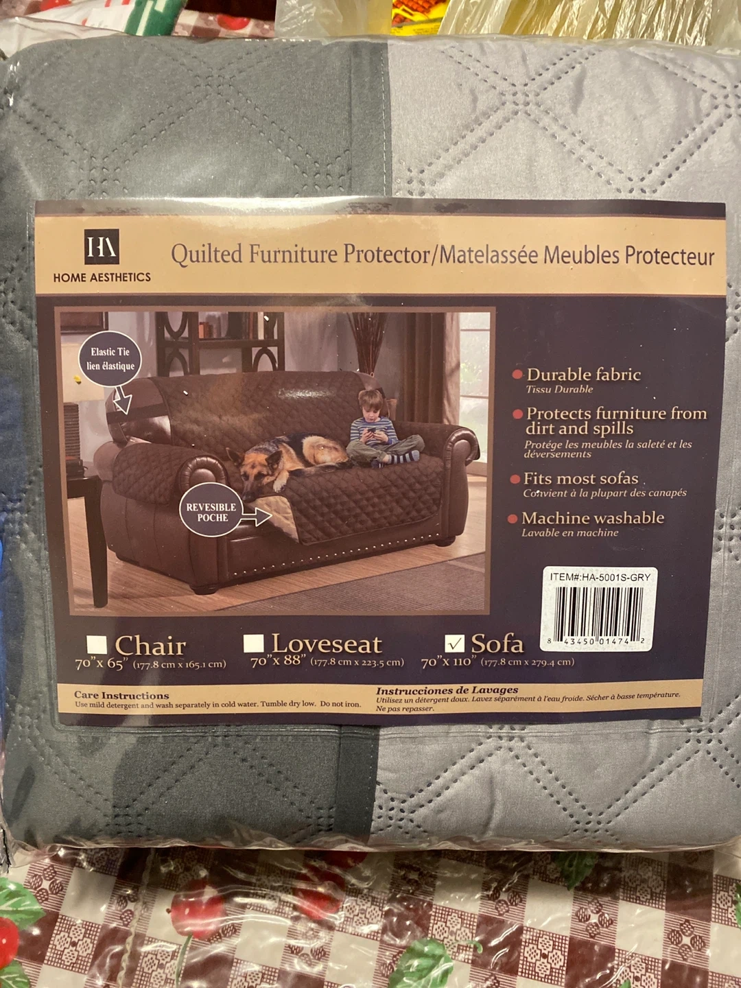 This durable furniture protector safeguards your sofa from dirt and spills. It's machine washable for easy care and includes an elastic tie for a snug fit. Available in a generous 70" x 110" size, it fits most sofas.