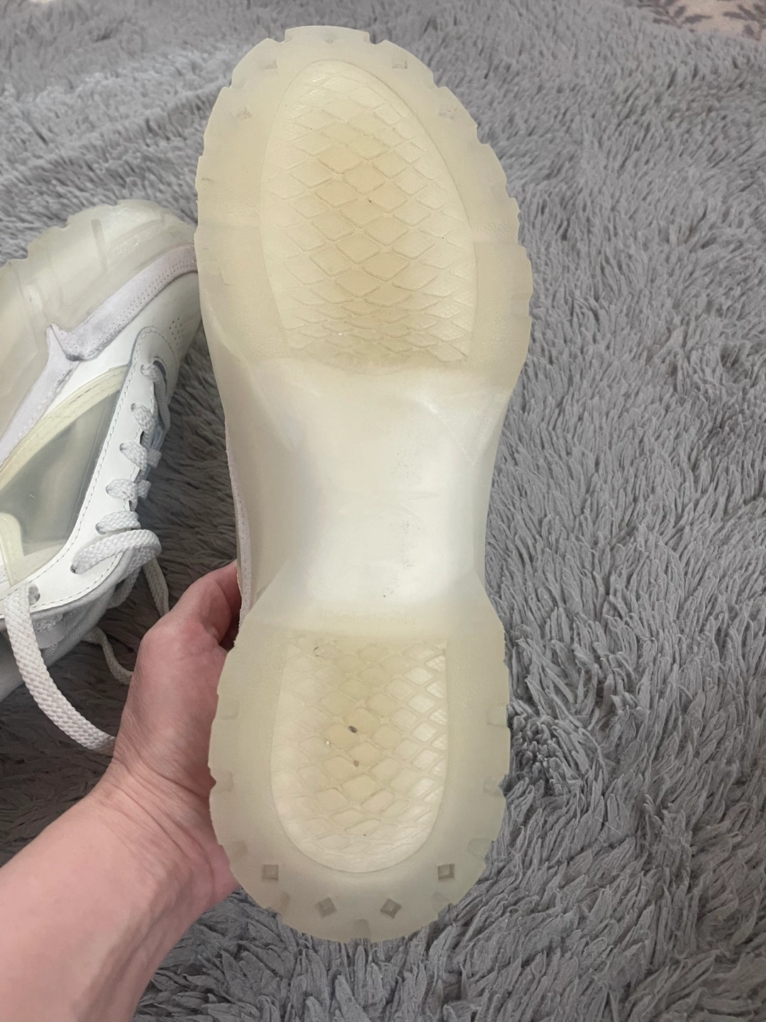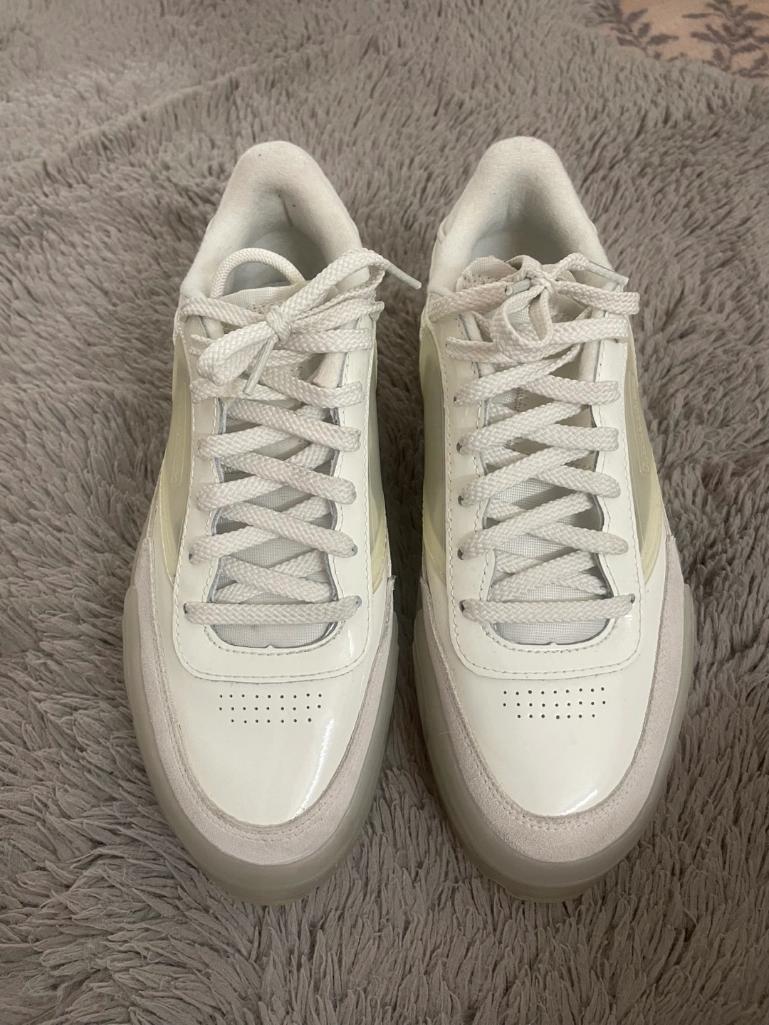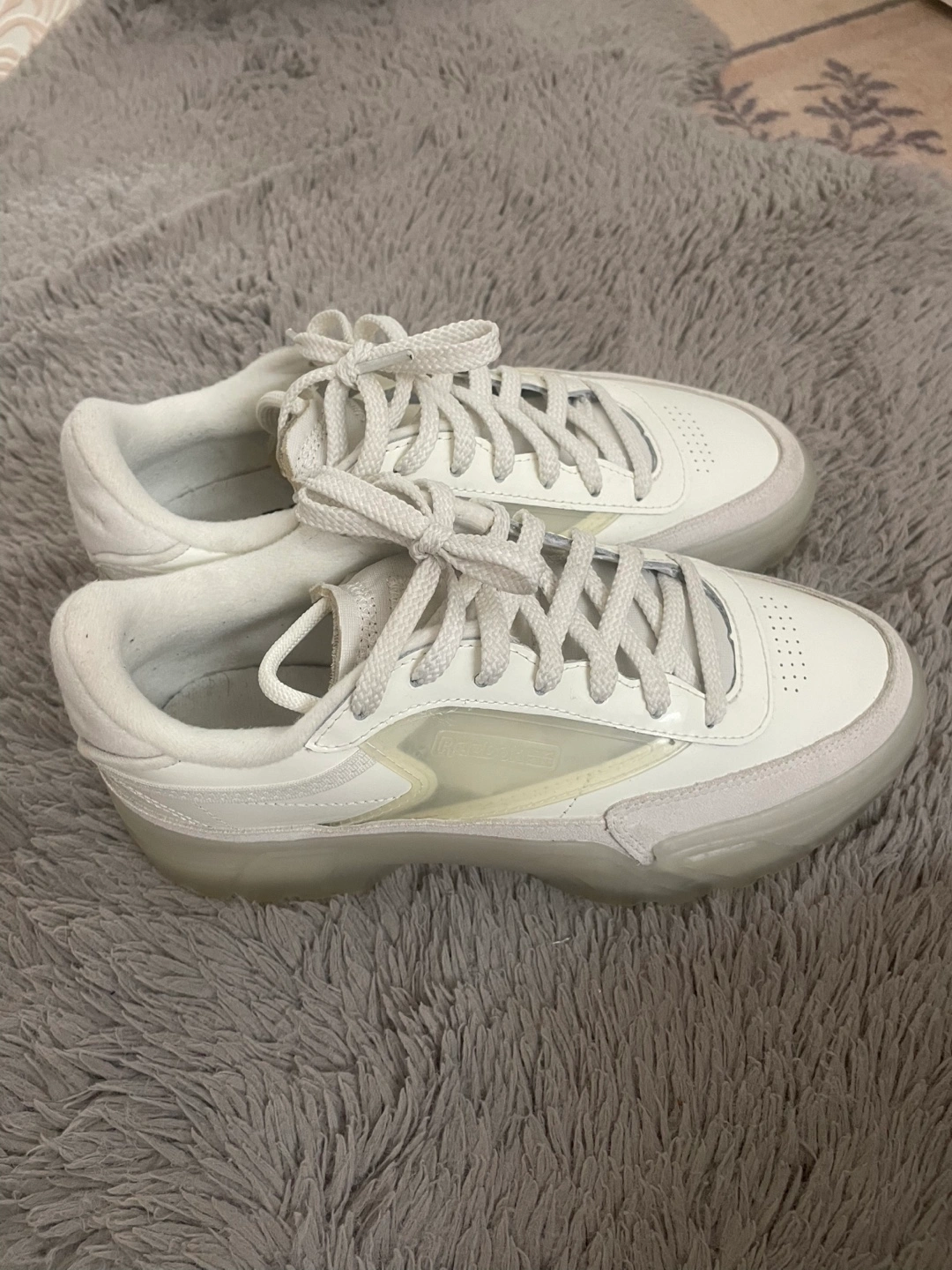 White platform sneakers. Lace-up closure. Translucent outsole. Lightly worn. Good condition.