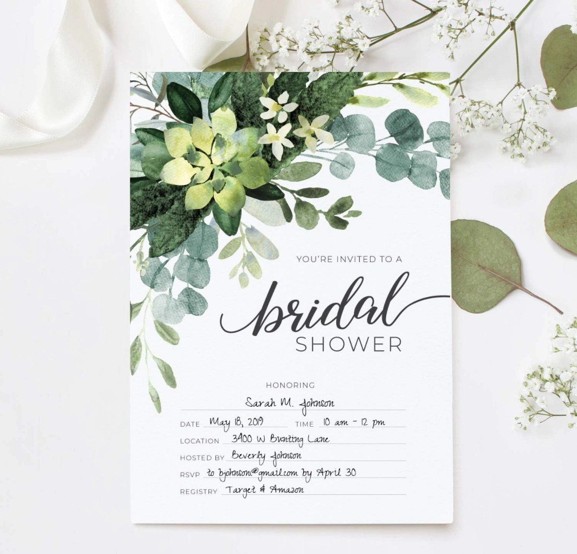 Lush Greenery Fill In The Blank Bridal Shower Invitation / 25 Floral Bridal Shower Invitations With Envelopes