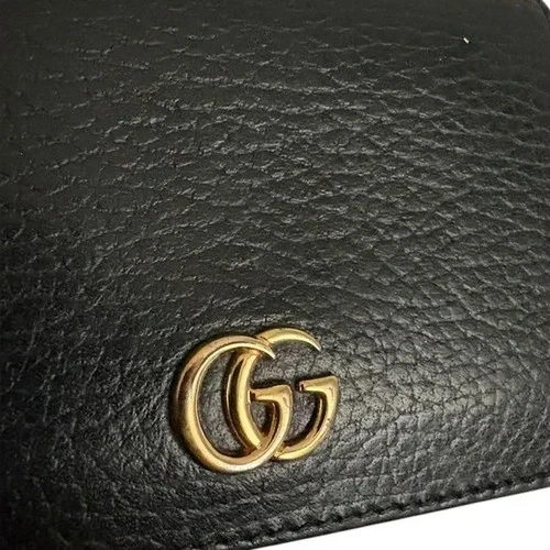 GUCCI GG Marmont Black Pebbled Leather Case Small Wallet