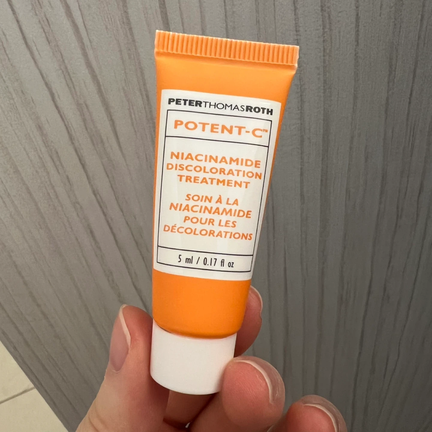 This is Peter Thomas Roth Potent-C Niacinamide Discoloration Treatment in a 5 ml / 0.17 fl oz size. It's designed for Niacinamide Discoloration Treatment. For external use only.