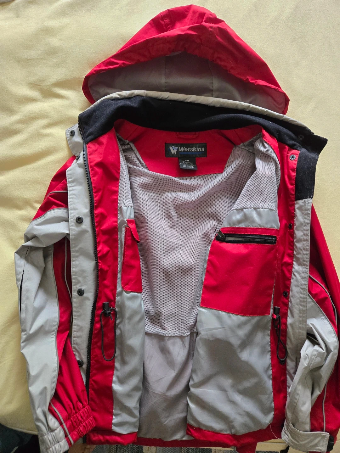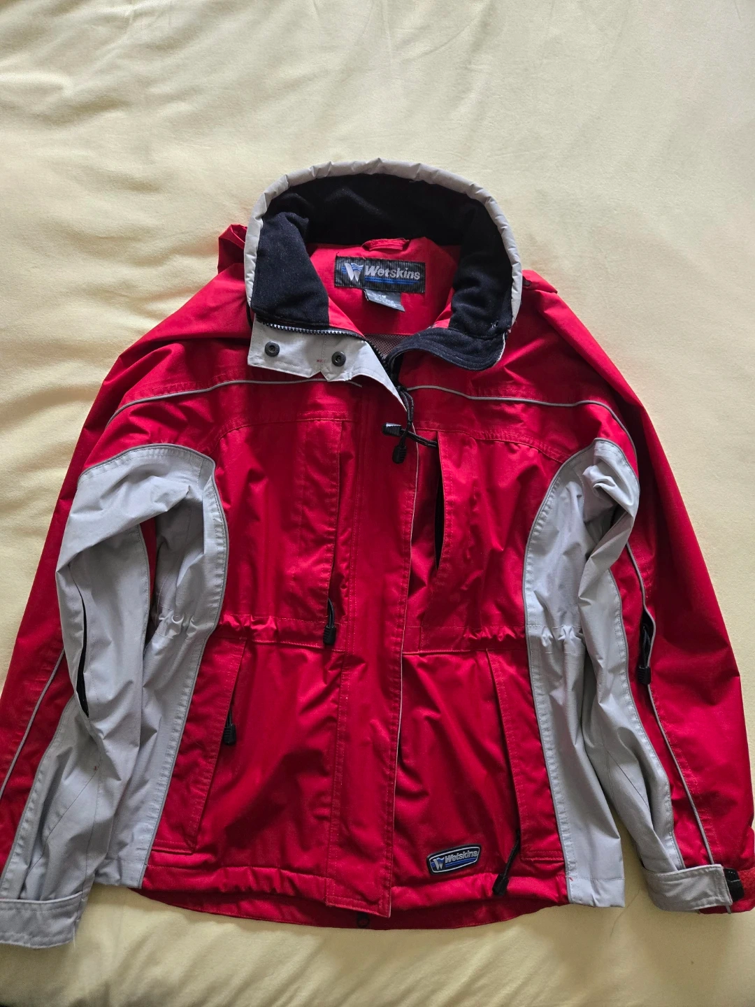 Women's Rain set. Jacket worn a couple of times, pants never worn. Wetsuits brand. Excellent condition. Generous-sized medium