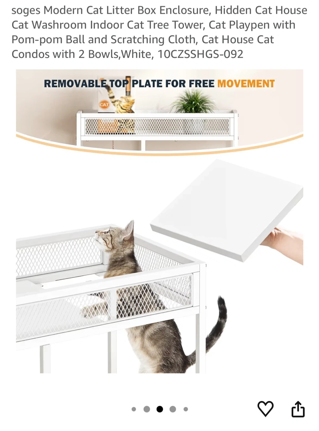 Soges Modern White Cat Litter Box Enclosure & Tree Tower
