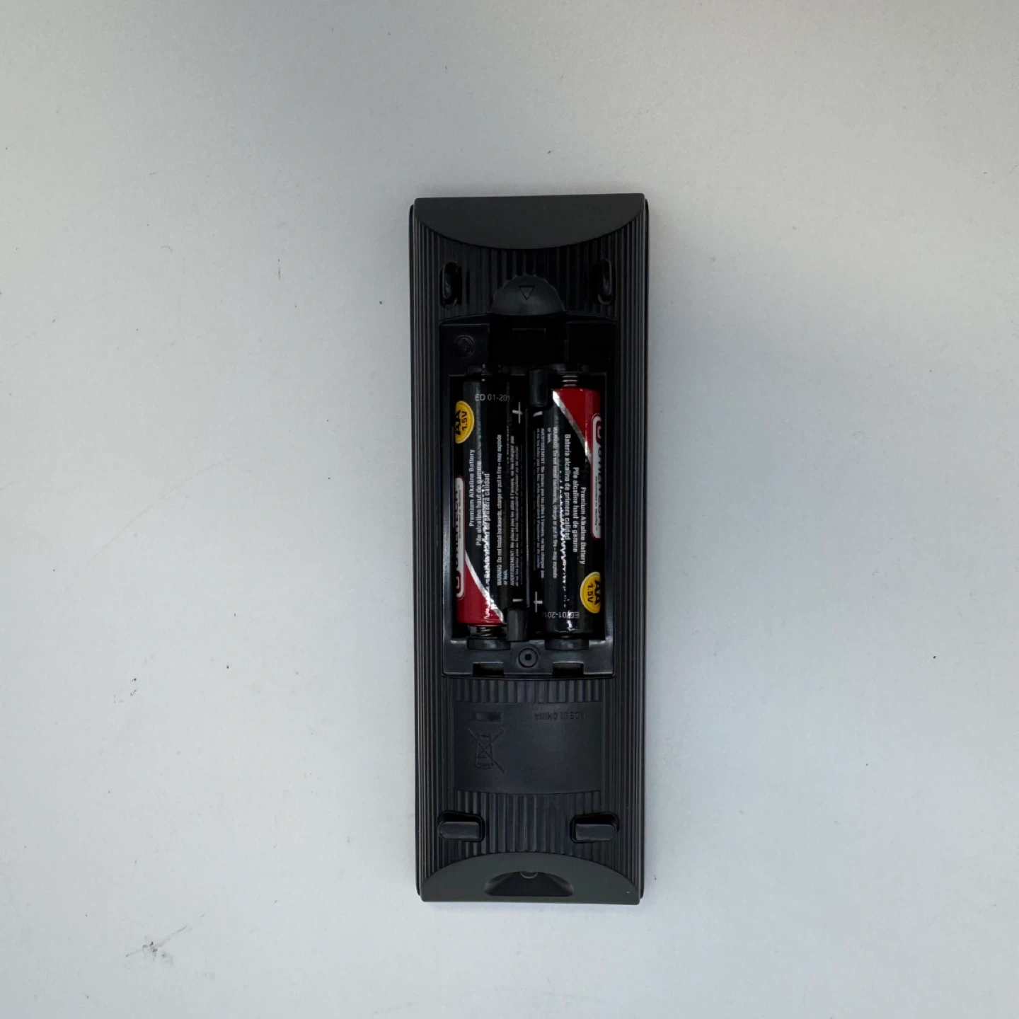 The battery cover on the back of the remote control is missing, but the remote works properly.