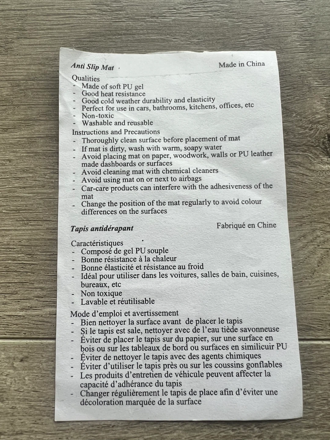 This black anti-slip mat is made of soft PU gel and is non-toxic. It's washable and reusable, offering good heat resistance and durability. Perfect for use in cars, bathrooms, kitchens, and offices.