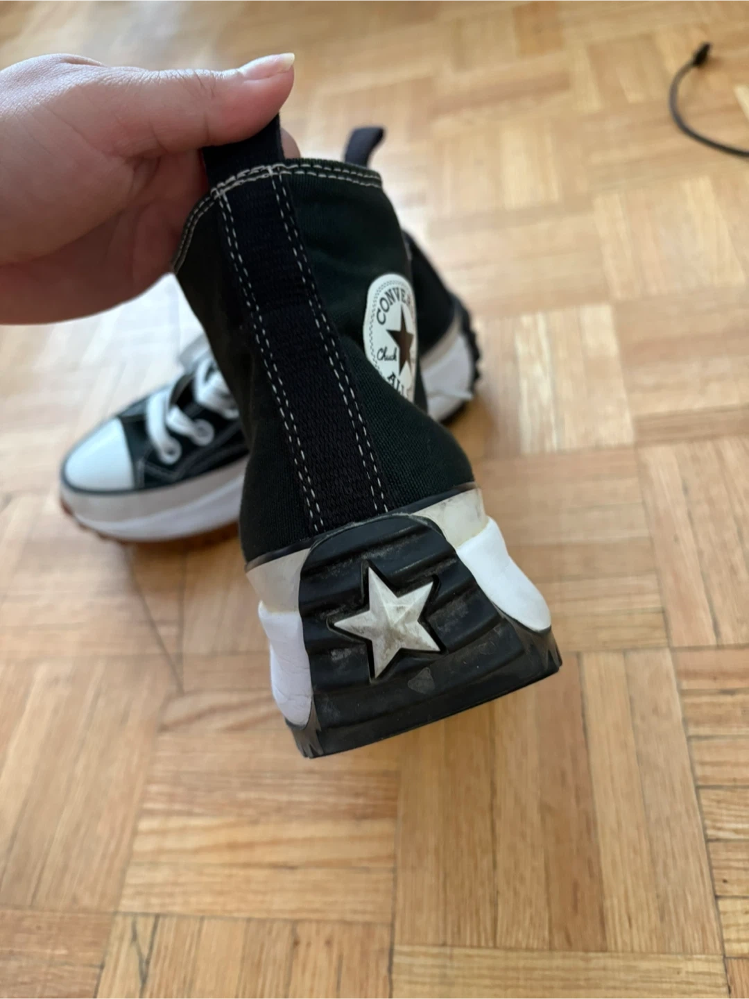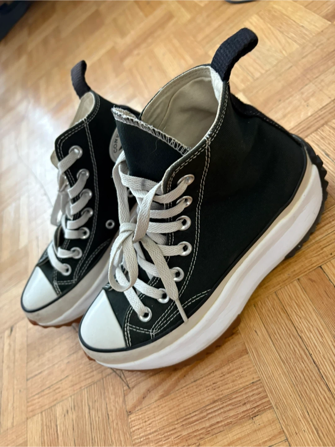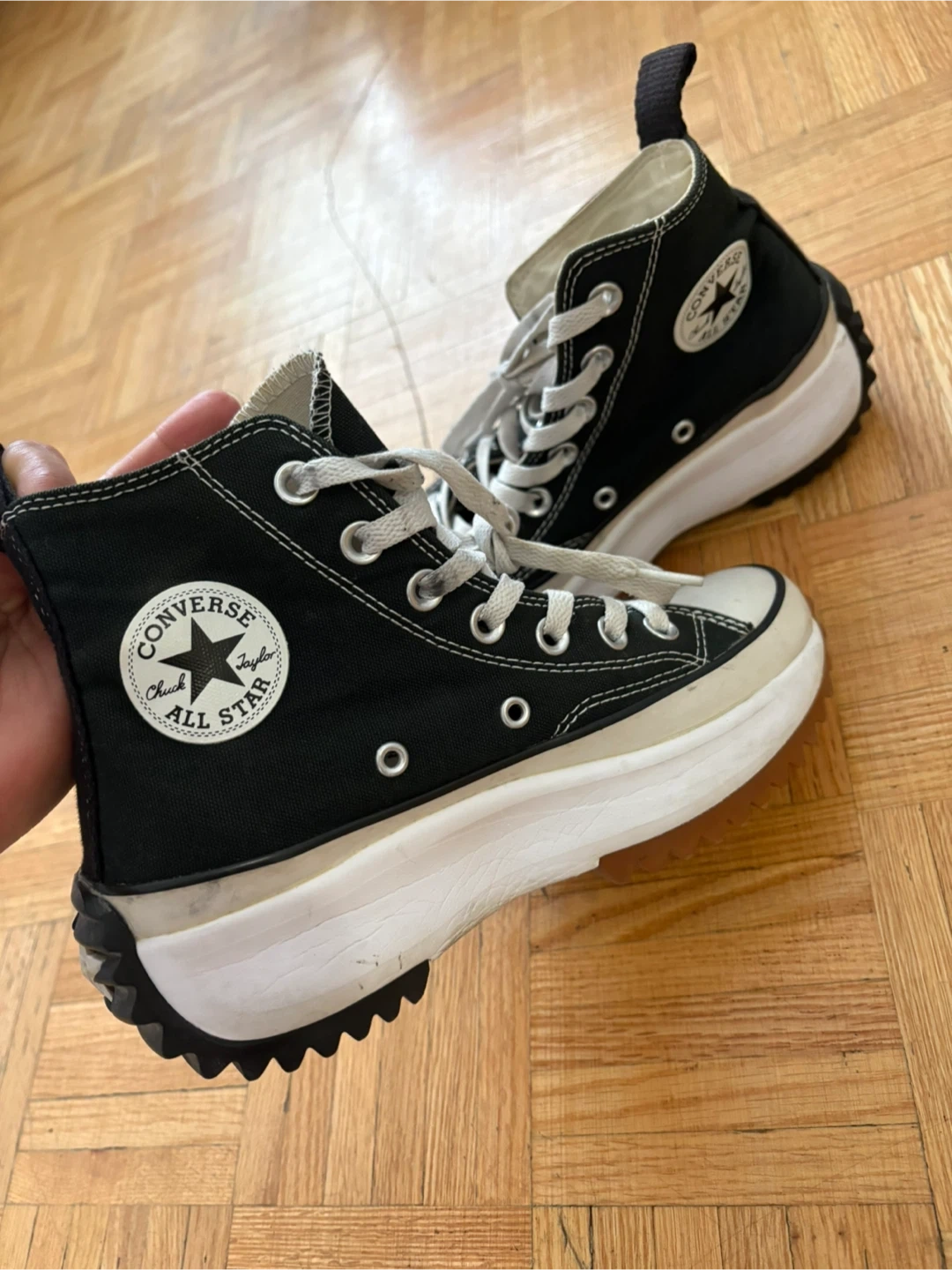 Selling a pair of Converse Chuck Taylor All Star Run Star Hike high tops! They're in great condition and ready for a new home. These stylish and comfortable shoes are perfect for adding a bit of edge to any outfit. Don't miss out!