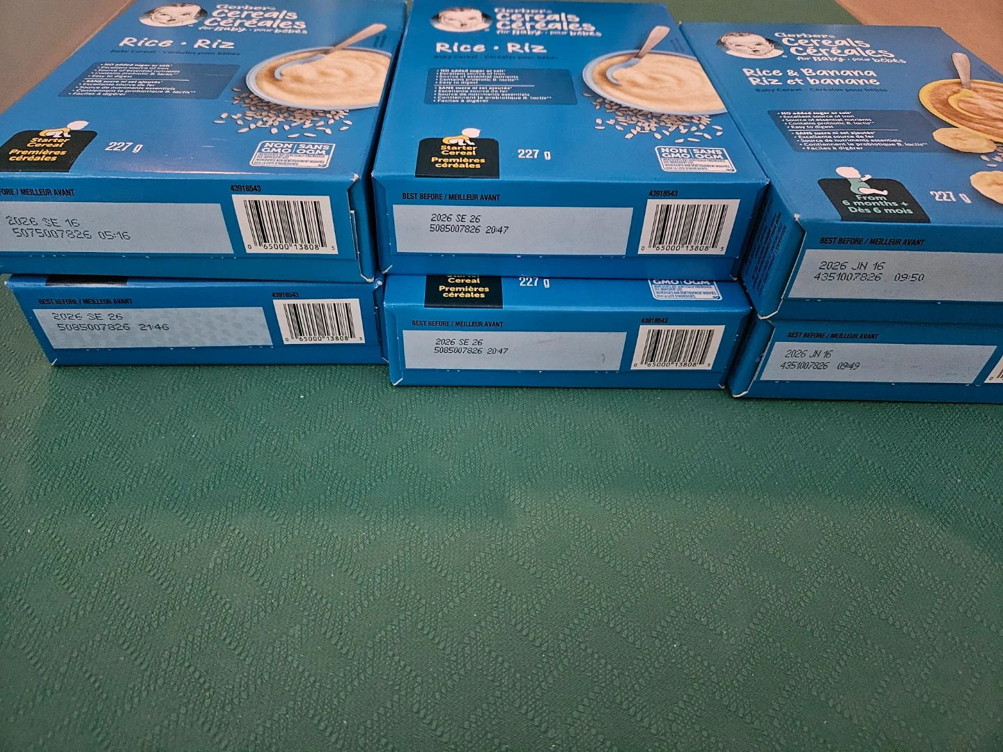 4 boxes of Gerber Rice Cereal. All the rice cereal expire on September 2026.