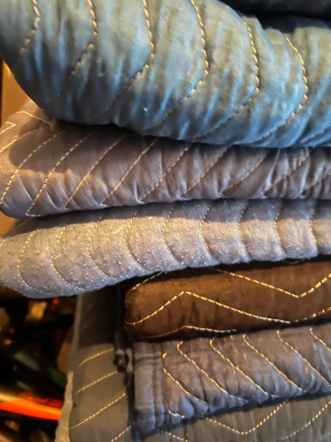 Selling a stack of moving blankets. They're in good condition and ready to help with your next move! These are great for protecting furniture and other items during transport or storage. 10 premium moving blankets
