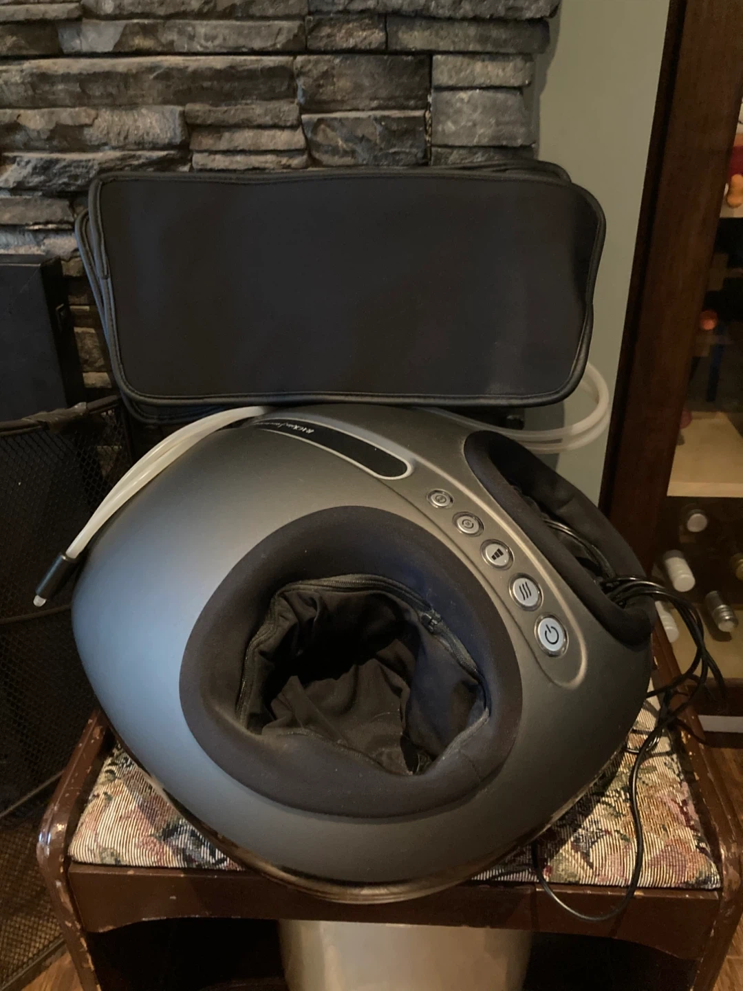 This is a Sharper Image Shiatsu Foot Massager. It has multiple massage settings and comes with a portable case. Great for tired feet after a long day!