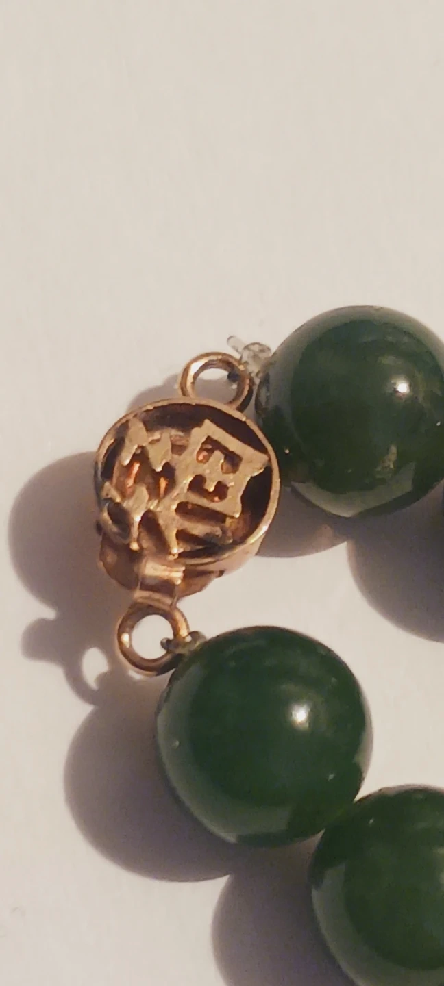 14 KARAT GOLD CLASP STAMPED CHINESE JADE NECKLACE
