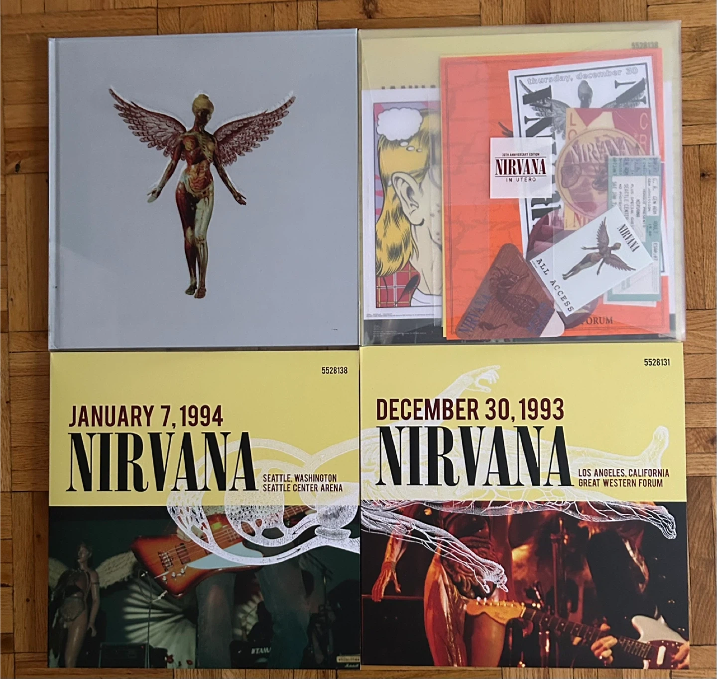 This is the Nirvana In Utero 30th Anniversary Edition box set. It includes the original album, live recordings from January 7, 1994, and December 30, 1993. It also comes with various memorabilia and extras from the era.