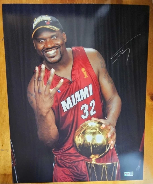 Capture a piece of basketball history with this authentic 16x20 photo signed by the legendary Shaquille O'Neal. Authenticated by Players Ink, this original piece showcases Shaq's 4th Title in his Miami Heat days, a must-have for any true sports memorabilia collector or Heat enthusiast. The signature is bold and clear, placed prominently on the photo, ensuring it stands out in any collection. Whether you're a fan of the Heat, the Lakers, or simply a admirer of one of the biggest names in NBA history, this signed photo is a remarkable keepsake.