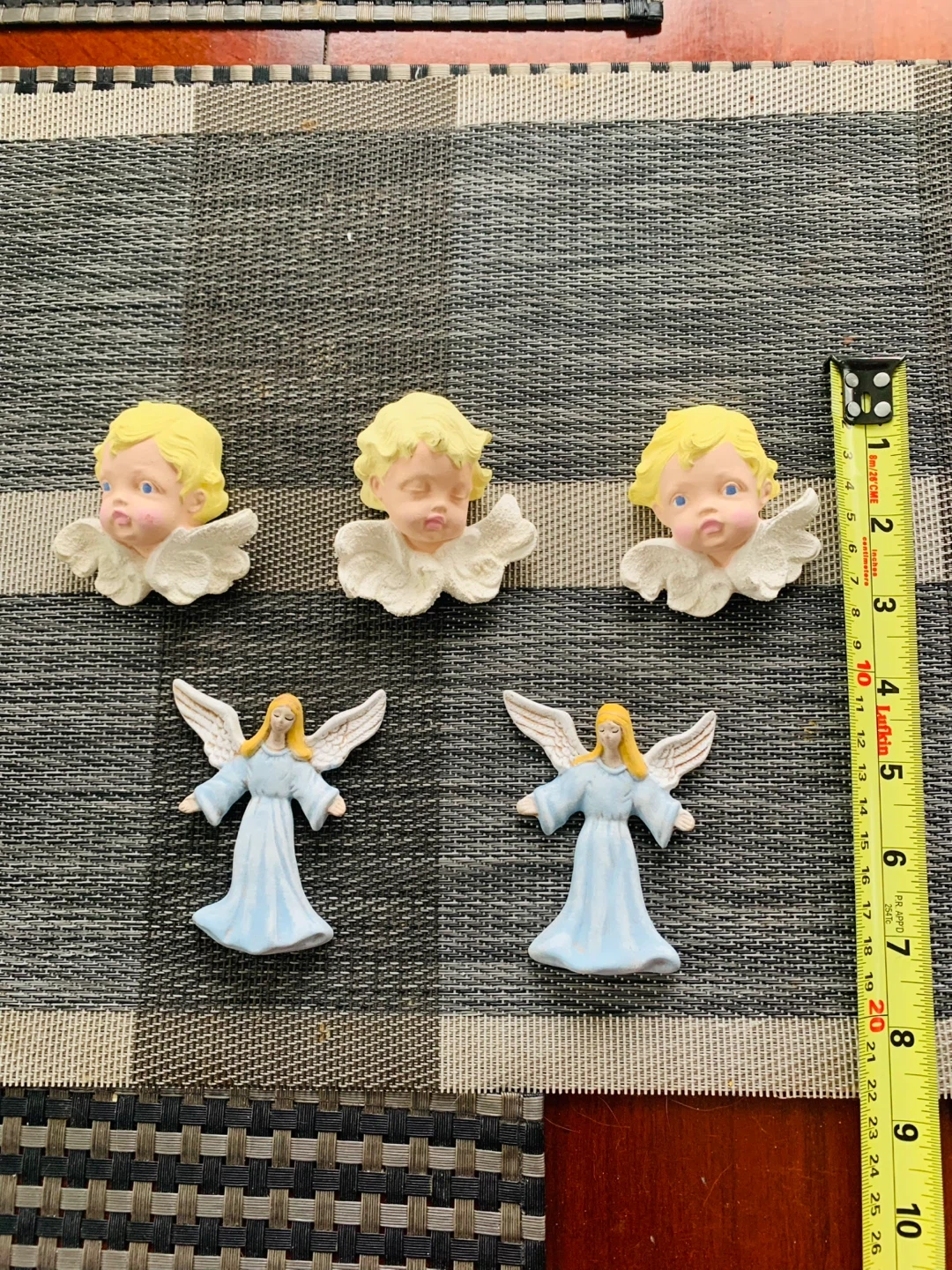 Plaster… NEW hand-painted Angels Decoration. Take all 5 for $6 CAD (firm). See pictures for measurements. Smoke free home.