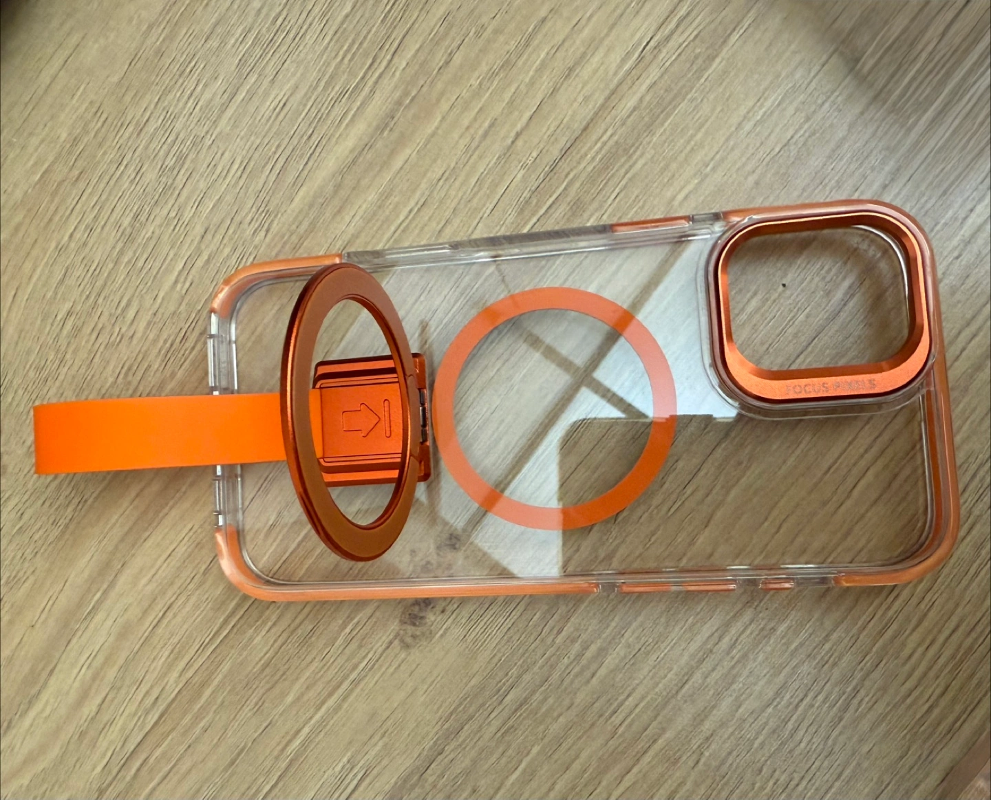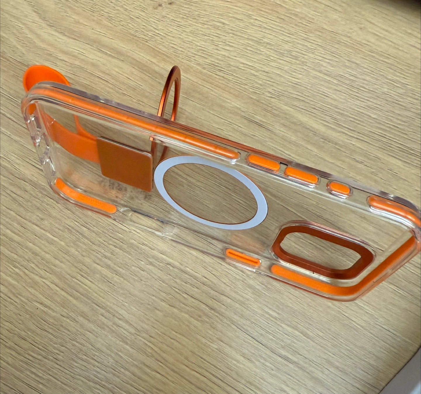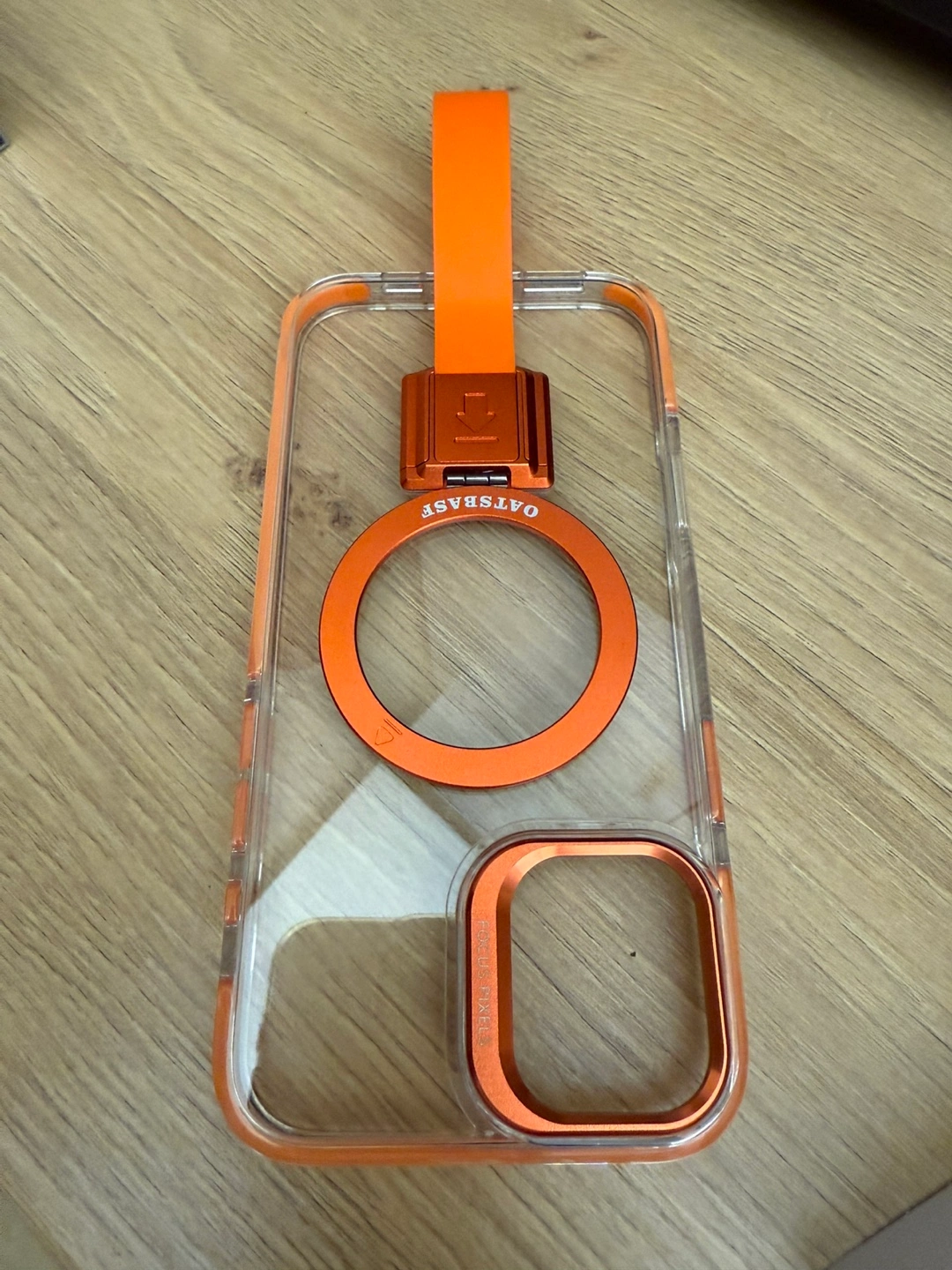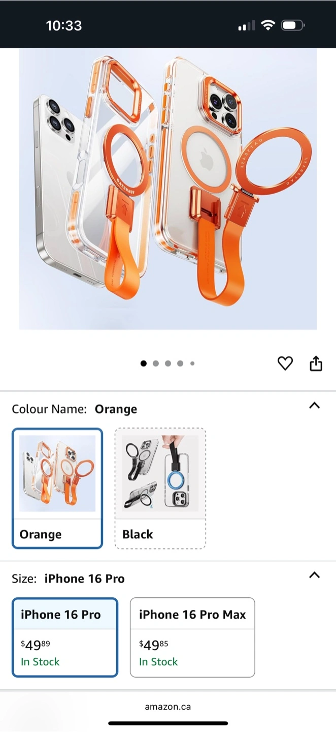 Evosparkle iPhone 16 plus case in orange! It's a clear case with orange accents and a convenient strap. Very sturdy with a lip to protect the screen and an enhanced camera protection. Drop impact protection and magsafe allowing you to charge your phone wirelessly. Magnetic removable strap that turns into a stand or even a hanging ring. Brand new never used in box. Retails for $49.99. Asking $25!