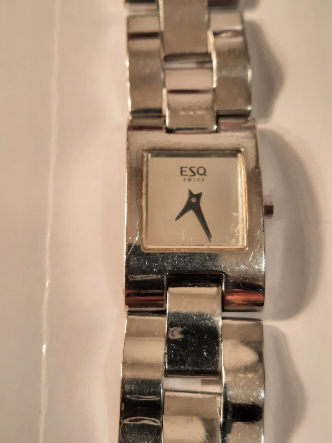 This ESQ Swiss watch is made from all stainless steel. It features a water-resistant design. Swiss quartz movement ensures reliable timekeeping. It's a great accessory for everyday wear!not new,but looking great.not used.clean condition.