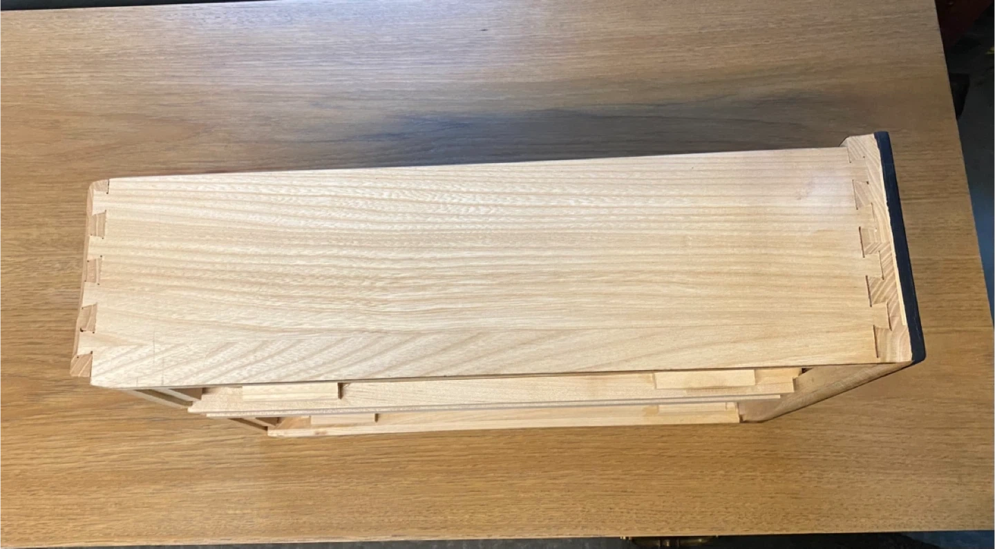 The warm wood top highlights the natural grain beautifully while the black body adds contrast and sophistication. This is not a mass-produced piece—this is solid, timeless furniture with character.