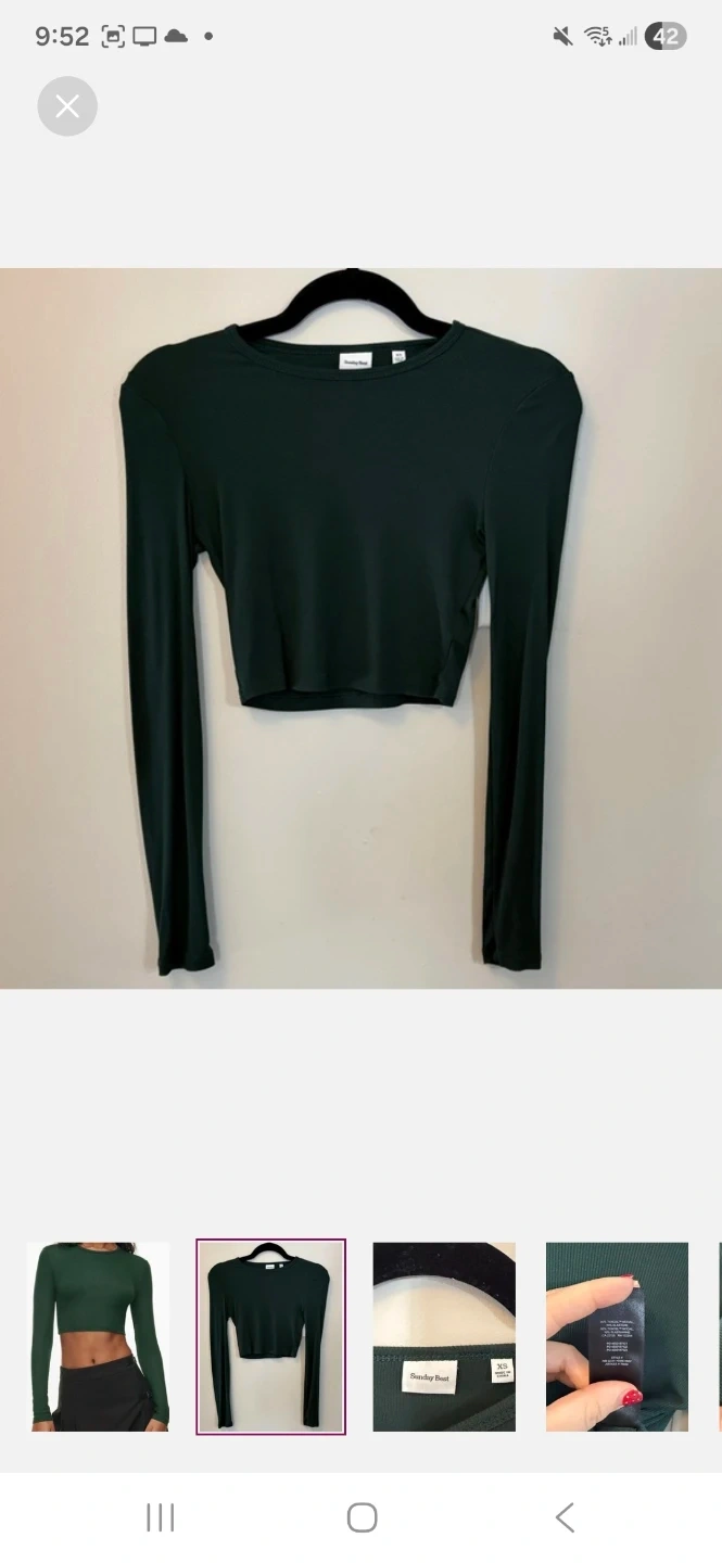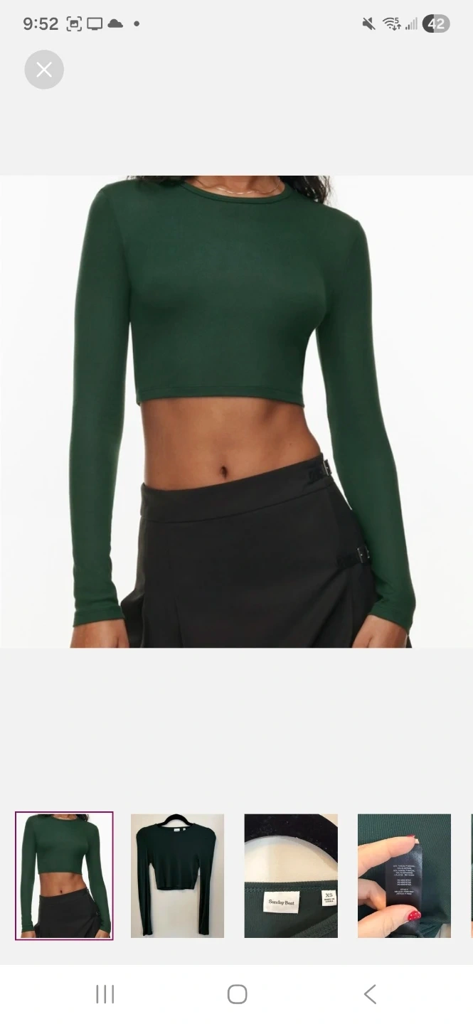 Everlane Women's ribbed cropped long sleeve top. Dark green colour. Made from a blend of cotton and elastane. Size XS.