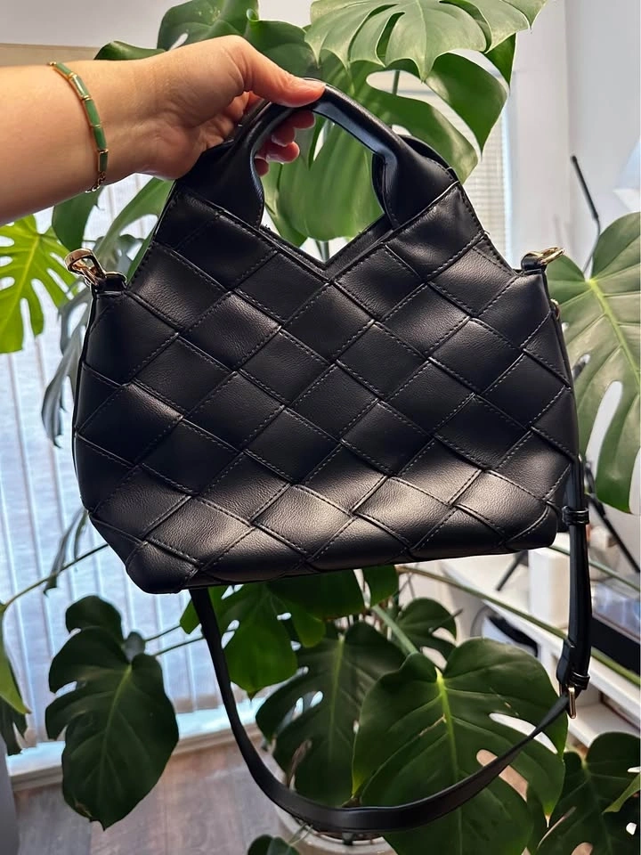Stylish black woven handbag. Bag has top handles and a detachable, adjustable shoulder strap. Comes with original LUXE dust bag. Bag measures about 11 inches wide. Great for everyday or going out. Brand NEW! Pickup only in Coquitlam, Westwood Plateau (behind IGA).